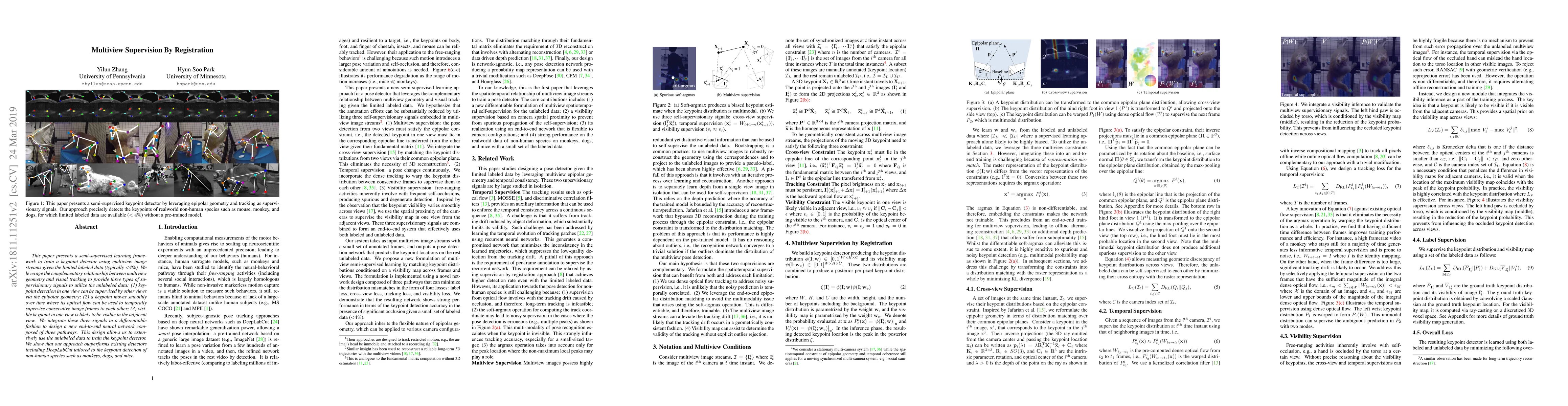 This paper presents a semi-supervised learning framework to train a keypoint detector using multiview image streams given the limited labeled data (typically $<$4\%). We leverage the complementary relationship between multiview geometry and visual tracking to provide three types of supervisionary signals to utilize the unlabeled data: (1) keypoint detection in one view can be supervised by other views via the epipolar geometry; (2) a keypoint moves smoothly over time where its optical flow can be used to temporally supervise consecutive image frames to each other; (3) visible keypoint in one view is likely to be visible in the adjacent view. We integrate these three signals in a differentiable fashion to design a new end-to-end neural network composed of three pathways. This design allows us to extensively use the unlabeled data to train the keypoint detector. We show that our approach outperforms existing detectors including DeepLabCut tailored to the keypoint detection of non-human species such as monkeys, dogs, and mice.