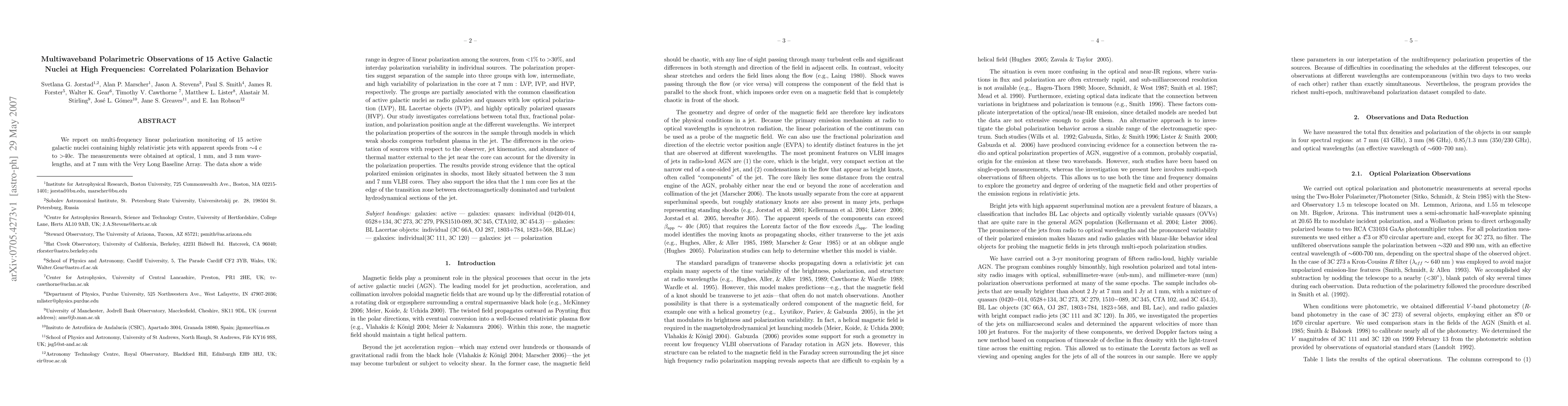 This study monitors the linear polarization of 15 active galactic nuclei across multiple wavelengths, revealing a range of polarization behaviors and variability. The findings suggest three groups based on polarization variability, linked to different AGN classifications, and support models of polarized emission from shocks in relativistic jets.