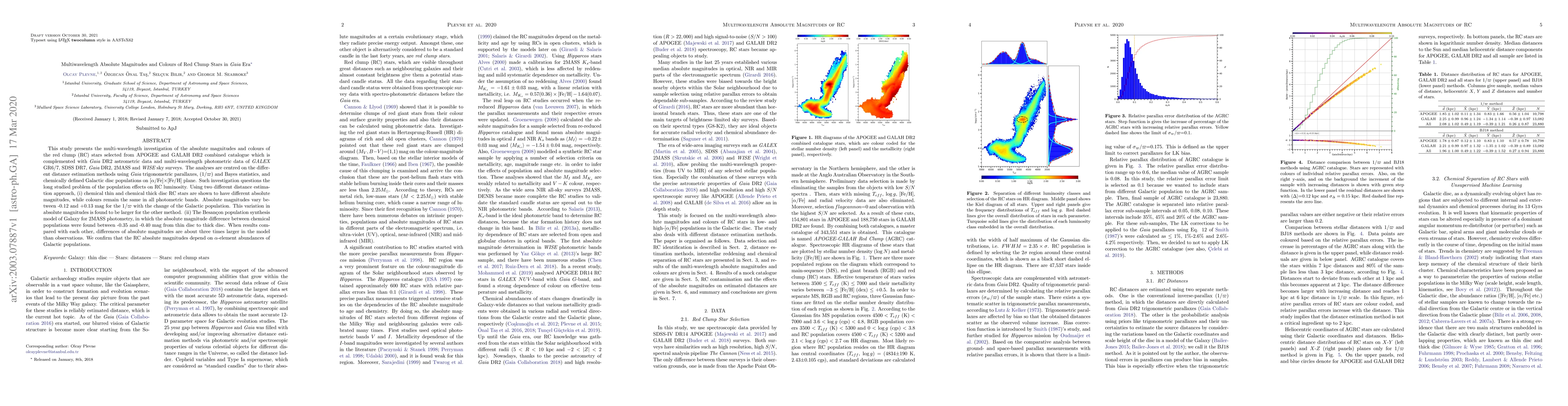 This study presents the multi-wavelength investigation of the absolute magnitudes and colours of the red clump (RC) stars selected from APOGEE and GALAH DR2 combined catalogue which is complemented with {\it Gaia} DR2 astrometric data and multi-wavelength photometric data of {\it GALEX} GR6/7, SDSS DR7, {\it Gaia} DR2, 2MASS and {\it WISE} sky surveys. The analyses are centred on the different distance estimation methods using {\it Gaia} trigonometric parallaxes, (1/$\varpi$) and Bayes statistics, and chemically defined Galactic disc populations on [$\alpha$/Fe]$\times$[Fe/H] plane. Such investigation questions the long studied problem of the population effects on RC luminosity. Using two different distance estimation approach, (i) chemical thin and chemical thick disc RC stars are shown to have different absolute magnitudes, while colours remain the same in all photometric bands. Absolute magnitudes vary between -0.12 and +0.13 mag for the 1/$\varpi$ with the change of the Galactic population. This variation in absolute magnitudes is found to be larger for the other method. (ii) The Besan\c con population synthesis model of Galaxy for 2MASS photometry, in which the absolute magnitude difference between chemical populations were found between -0.35 and -0.40 mag from thin disc to thick disc. When results compared with each other, differences of absolute magnitudes are about three times larger in the model than observations. We confirm that the RC absolute magnitudes depend on $\alpha$-element abundances of Galactic populations.
