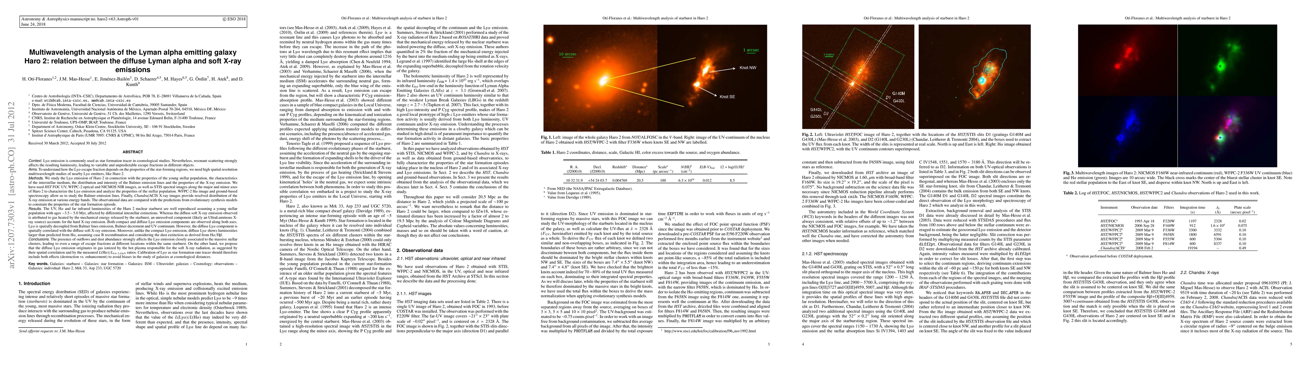 In order to use Lyman alpha (Lya) emission as star formation tracer in cosmological studies, we must understand how the resonant scattering affects the escape fraction of the Lya photons. Thus, high spatial resolution multiwavelength studies of nearby Lya emitters, like Haro 2, are highly needed. For that purpose, we have used Chandra X-ray and HST (UV, optical and NIR) images of Haro 2, and STIS and ground-based spectral images along its major and minor axes, to characterize the Lya emission and the properties of the stellar population. The UV, Ha (Halpha) and FIR luminosities of the Haro 2 nuclear starburst are reproduced using evolutionary synthesis models assuming a young stellar population with ages ~3.5-5.0 Myr, affected by differential interstellar extinctions. The observed X-ray emission is attributed to gas heated by the mechanical energy released by the starburst (soft component) and a Ultra-Luminous X-ray source candidate (hard). Both compact and diffuse Lya components are observed. Whereas Lya is spatially decoupled from Balmer lines emission, Balmer decrement and UV continuum, the diffuse Lya component is spatially correlated with the diffuse soft X-ray emission. Moreover, unlike the compact one, diffuse Lya shows luminosities larger than predicted from Ha, assuming case B recombination and dust extinction as derived from Ha/Hbeta. We propose that, whereas the compact Lya emission is associated to the massive stellar clusters and is affected by outflows and dust extinction, the diffuse Lya originates in gas ionized by the hot plasma responsible for the soft X-ray radiation, as suggested by their spatial correlation and by the measured L(Ha)/LsoftX ratios. Calibration of Lya as star formation rate tracer should therefore include both effects (destruction vs. enhancement) to avoid biases in the study of galaxies at cosmological distances.