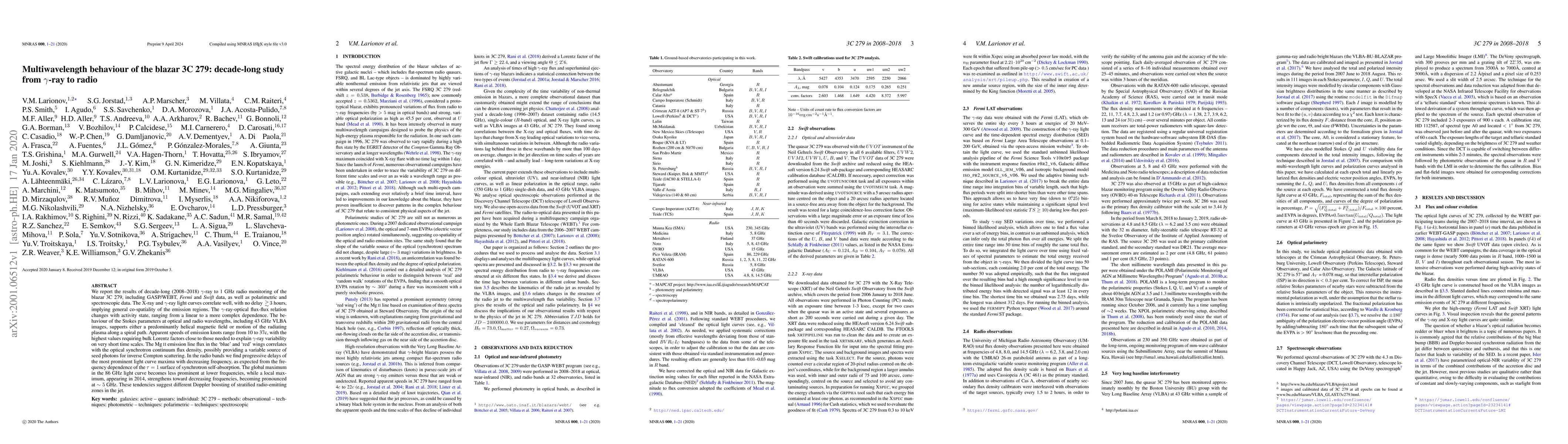 A decade-long study of blazar 3C279 reveals correlations between X-ray and gamma-ray light curves, with the gamma-ray-optical flux relation changing with activity state, indicating a complex emission mechanism.