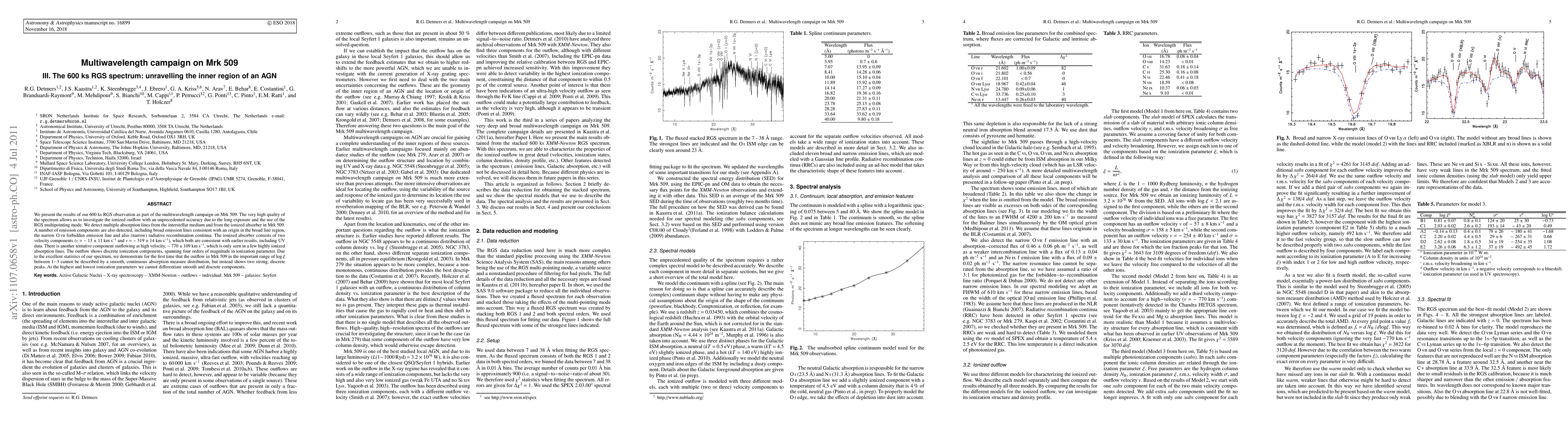 This paper reports on a 600 ks RGS observation of Mrk 509, revealing multiple absorption lines and ionized outflow components. The study identifies two velocity components in the ionized absorber and finds that the outflow's absorption measure distribution in the ionization parameter range of log xi between 1-3 exhibits two distinct peaks rather than a continuous distribution.