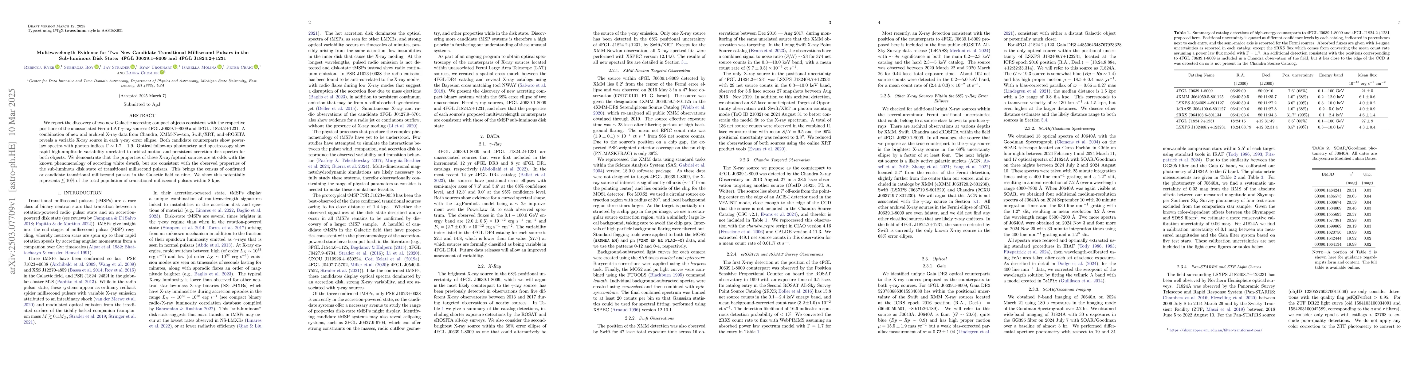 The research presents a comprehensive multiwavelength analysis of two new tMSP candidates, demonstrating a robust method for identifying such transitional objects using X-ray and optical data.