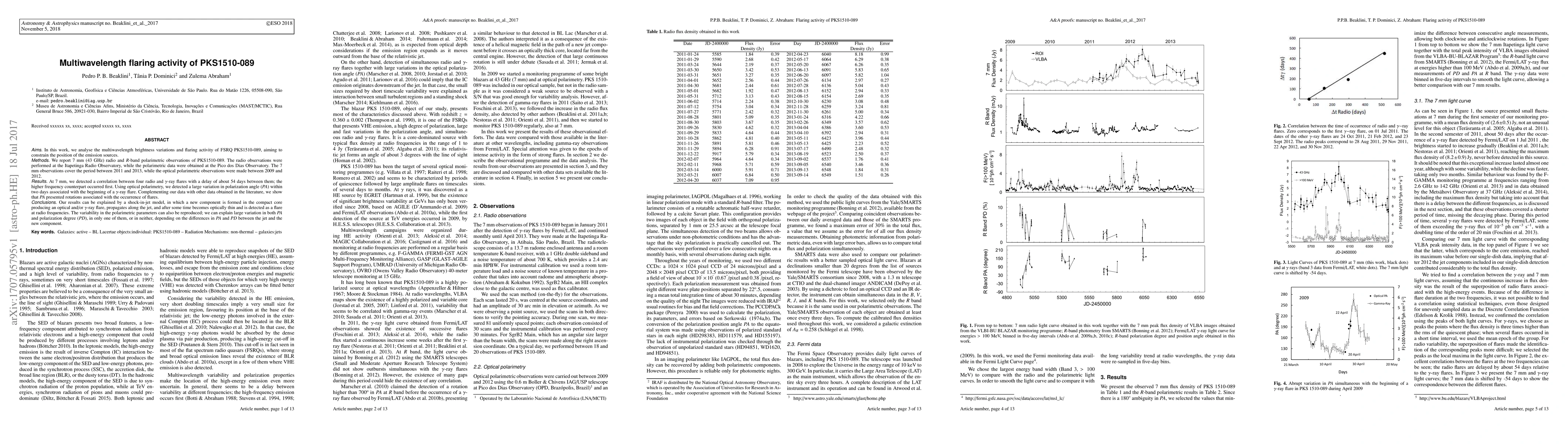 This study analyzes the multiwavelength brightness variations and flaring activity of the FSRQ PKS1510-089, detecting correlations between radio and gamma-ray flares with a 54-day delay. The results support a shock-in-jet model explaining the variability in polarimetric parameters through the formation and propagation of a new component in the jet.