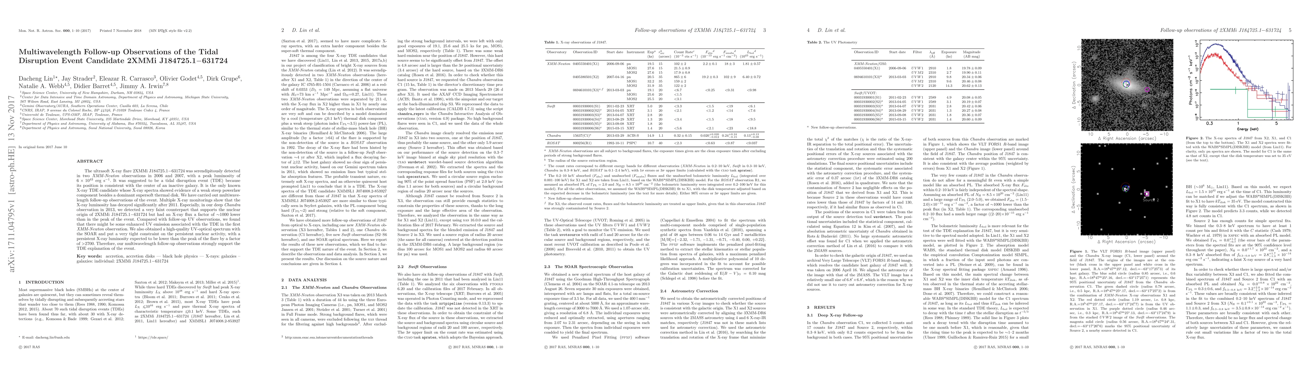 This paper reports multiwavelength follow-up observations of the ultrasoft X-ray flare 2XMMi J184725.1-631724, suggesting it is a tidal disruption event (TDE) based on its decay in X-ray luminosity and a faint counterpart detected in 2013. Enhanced UV emission and a persistent nuclear activity constraint further support the TDE hypothesis.