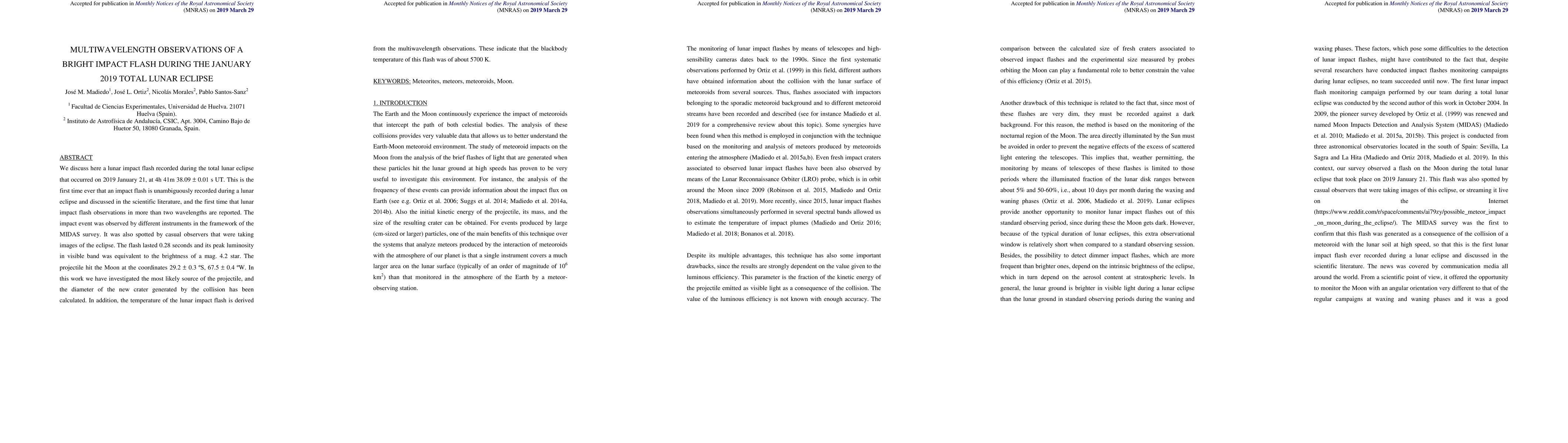 A lunar impact flash was recorded during a January 2019 total lunar eclipse, revealing the first-ever unambiguous record of an impact flash during a lunar eclipse, along with its temperature and crater diameter.