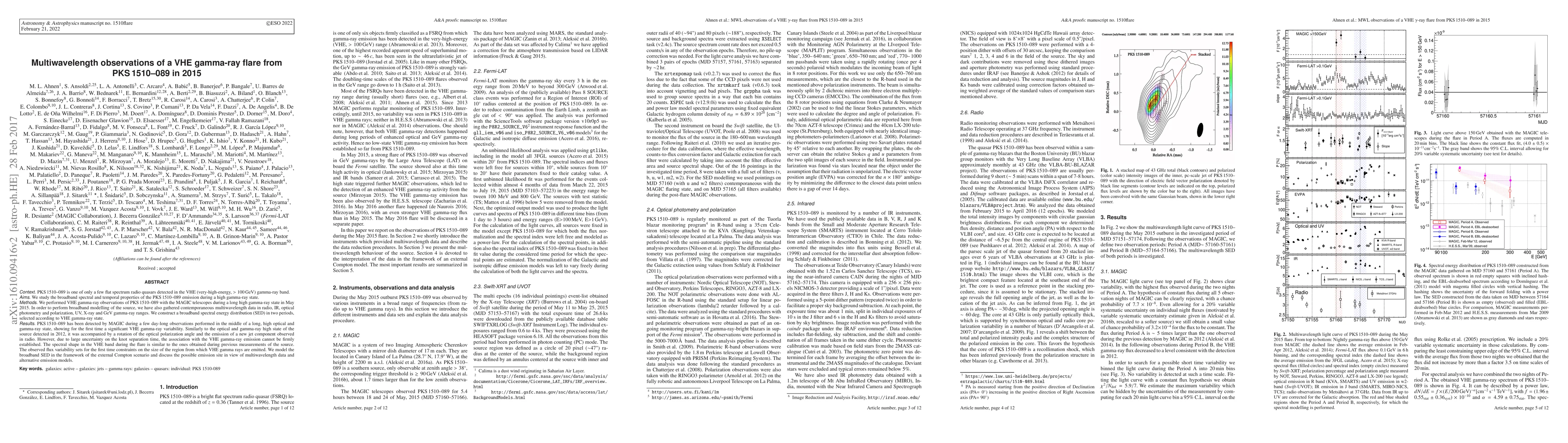 This paper reports on multiwavelength observations of PKS 1510-089 during a 2015 VHE gamma-ray flare, revealing significant variability and a rotation of the optical polarization angle. The study models the broadband SED, suggesting the emission likely originates from the external Compton process.