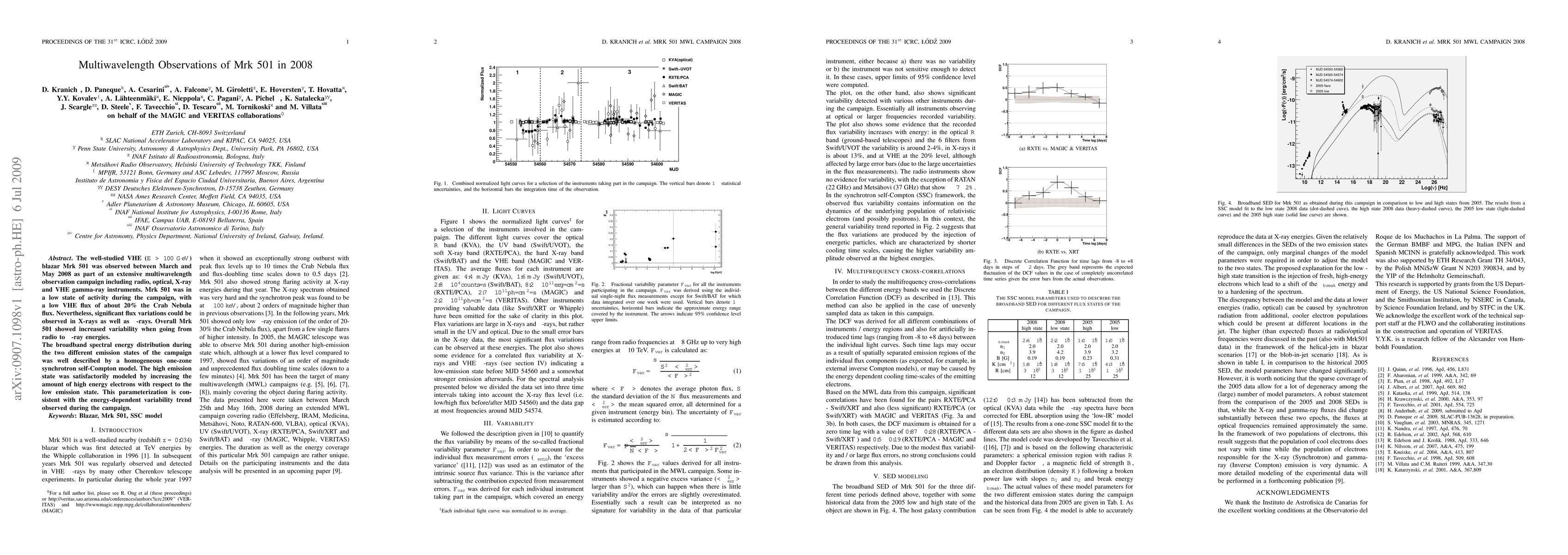 This study details multiwavelength observations of the blazar Mrk 501 in 2008, revealing significant flux variations in X-rays and gamma-rays despite low VHE activity. The broadband spectral energy distribution was well-modeled by a synchrotron self-Compton model, with variability trends consistent with changes in high-energy electron populations.