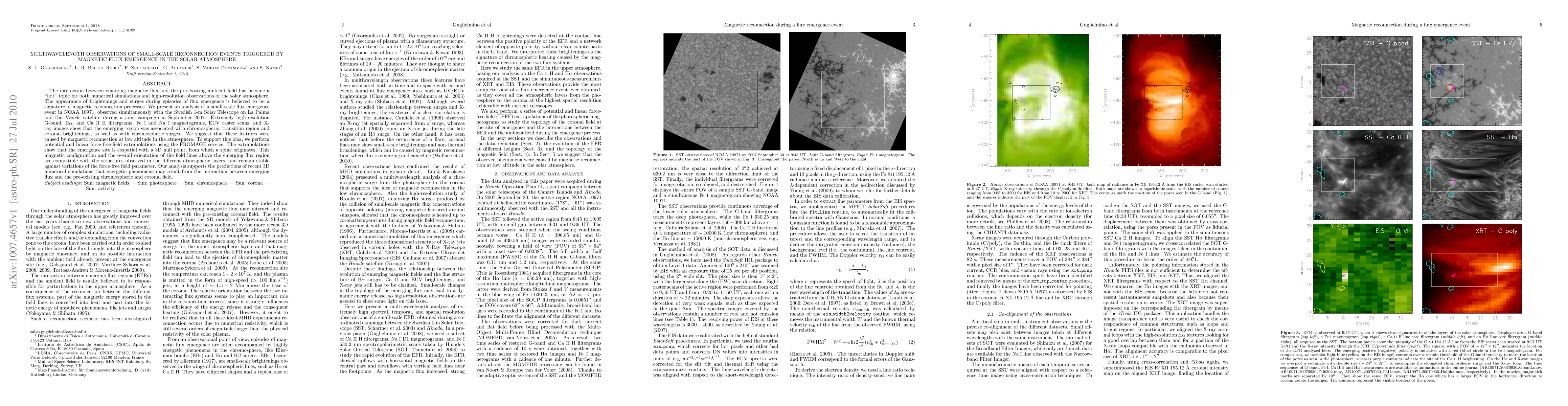 This paper analyzes a small-scale flux emergence event in the solar atmosphere using multiwavelength observations, revealing chromospheric, transition region, and coronal brightenings. The study suggests that these phenomena are caused by magnetic reconnection at low altitudes, supported by potential and linear force-free field extrapolations that identify a stable 3D null point configuration.