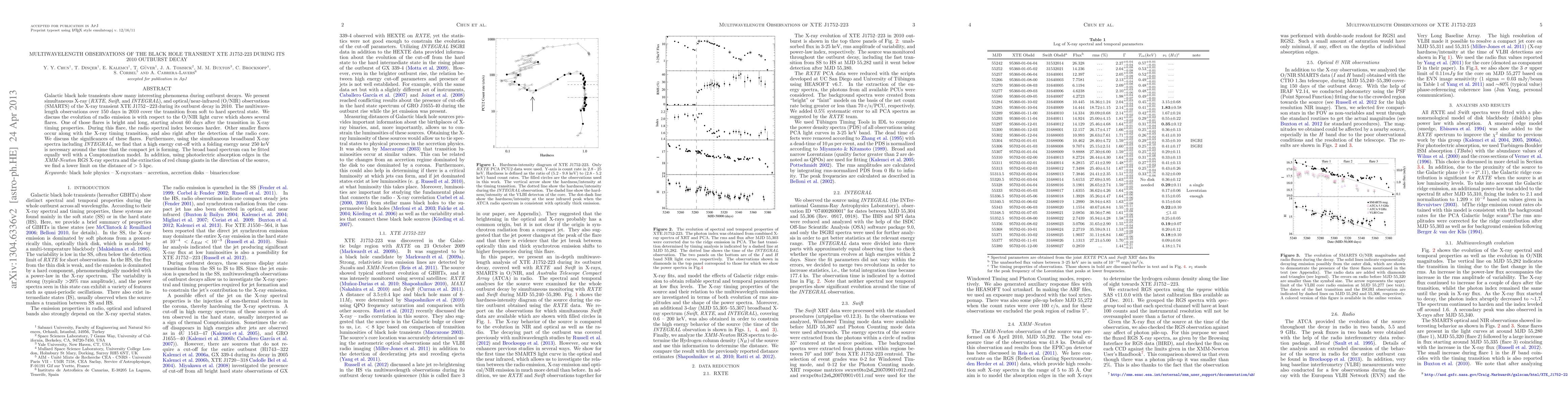 This paper presents multiwavelength observations of the black hole XTE J1752-223 during its 2010 outburst decay, showing transitions in spectral states and the evolution of radio emission alongside optical/near-infrared flares. A high energy cut-off near 250 keV is identified during jet formation, suggesting a Comptonization model, and a lower limit on the distance is estimated at > 5 kpc.