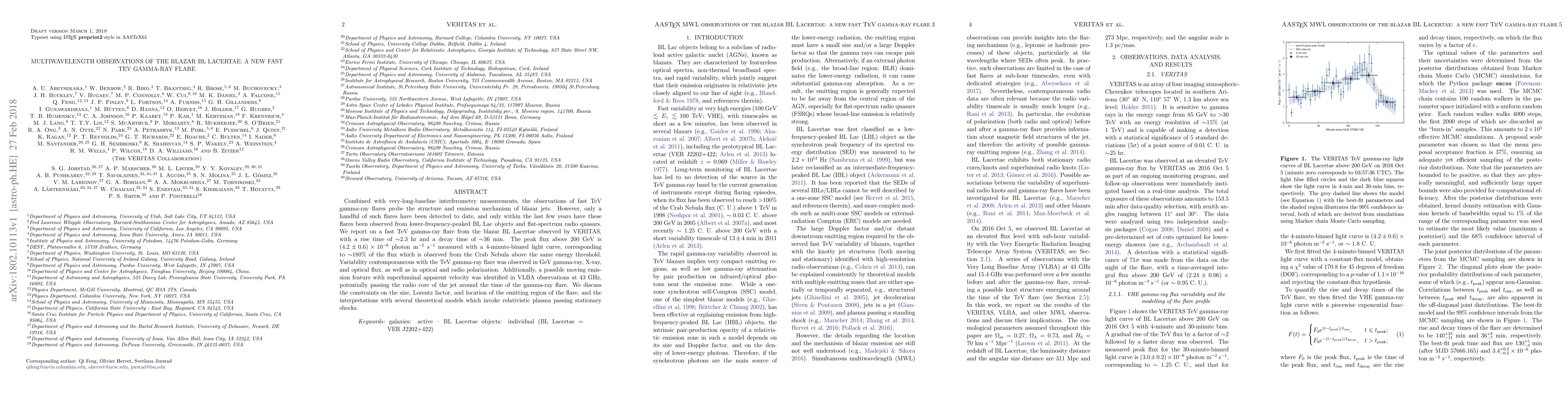 This paper reports a fast TeV gamma-ray flare from the blazar BL Lacertae, observed by VERITAS with a rise time of ~2.3 hr and a decay time of ~36 min. Contemporaneous variability in GeV gamma-ray, X-ray, optical, and radio polarization was detected, and a possible superluminal feature was identified in VLBA observations.