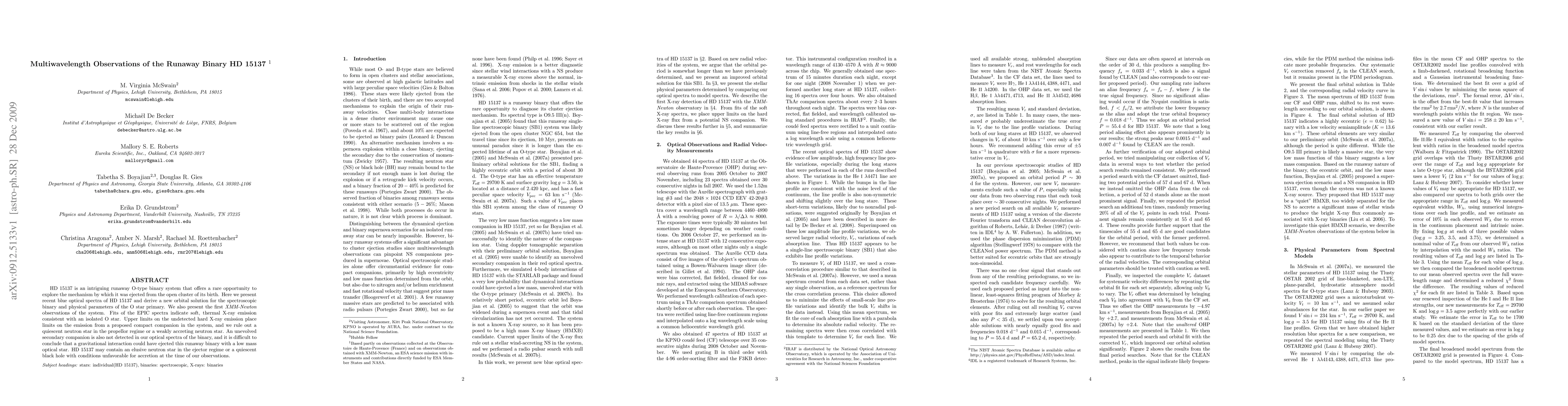 HD 15137 is an intriguing runaway O-type binary system that offers a rare opportunity to explore the mechanism by which it was ejected from the open cluster of its birth. Here we present recent blue optical spectra of HD 15137 and derive a new orbital solution for the spectroscopic binary and physical parameters of the O star primary. We also present the first XMM-Newton observations of the system. Fits of the EPIC spectra indicate soft, thermal X-ray emission consistent with an isolated O star. Upper limits on the undetected hard X-ray emission place limits on the emission from a proposed compact companion in the system, and we rule out a quiescent neutron star in the propellor regime or a weakly accreting neutron star. An unevolved secondary companion is also not detected in our optical spectra of the binary, and it is difficult to conclude that a gravitational interaction could have ejected this runaway binary with a low mass optical star. HD 15137 may contain an elusive neutron star in the ejector regime or a quiescent black hole with conditions unfavorable for accretion at the time of our observations.