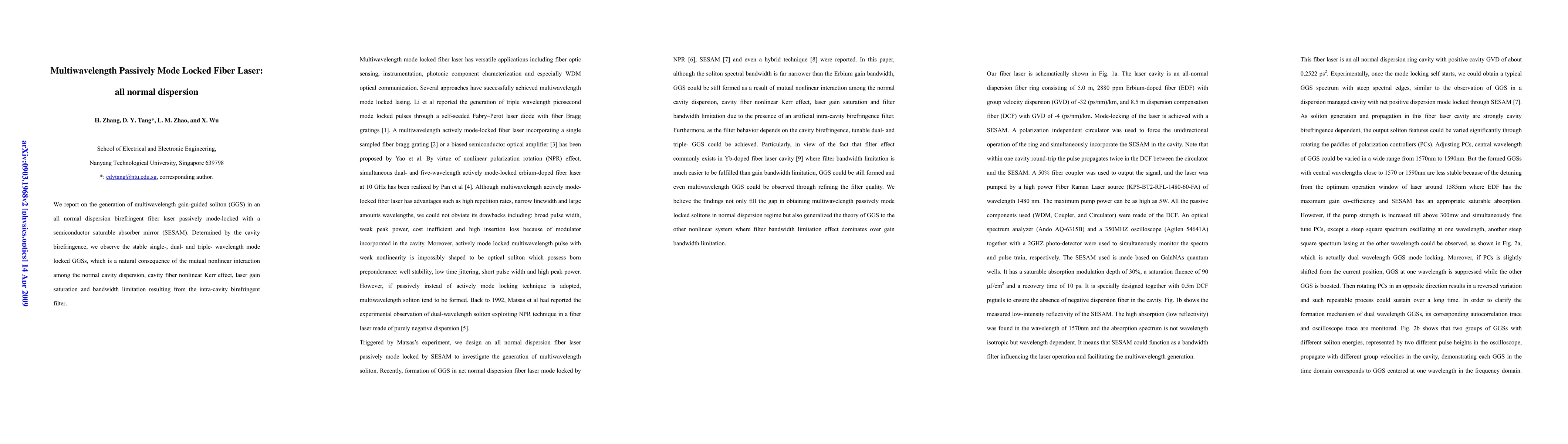 This research paper presents a multiwavelength passively mode-locked fiber laser utilizing an all normal dispersion birefringent fiber configuration with a semiconductor saturable absorber mirror (SESAM). The system generates stable single-, dual-, and triple-wavelength gain-guided solitons through interplay of cavity birefringence and nonlinear effects.