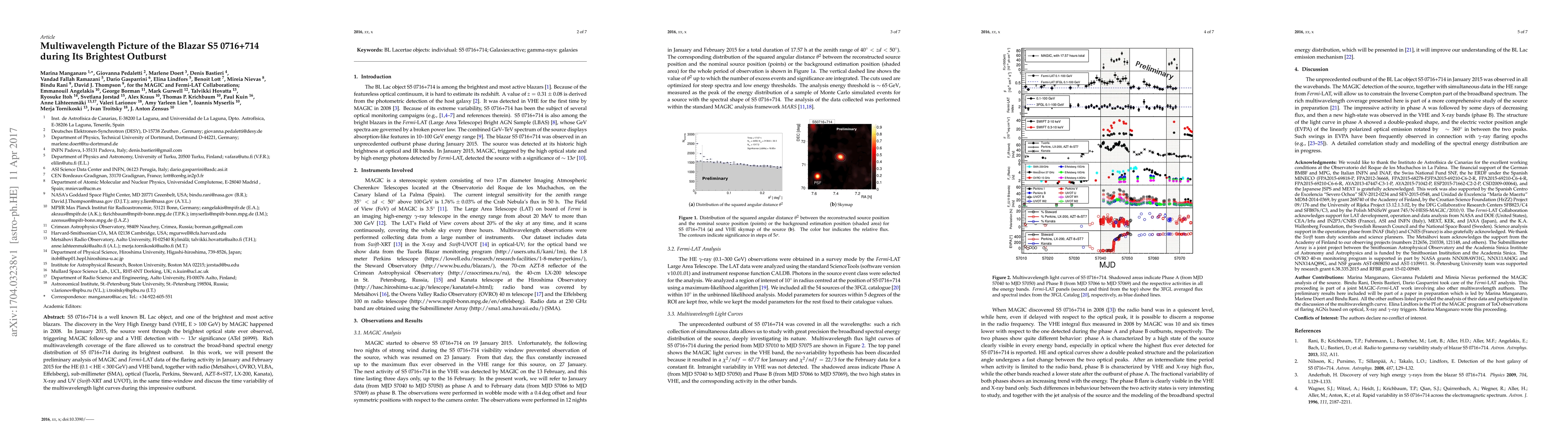 S5 0716+714 is a well known BL Lac object, one of the brightest and most active blazars. The discovery in the Very High Energy band (VHE, E > 100 GeV) by MAGIC happened in 2008. In January 2015 the source went through the brightest optical state ever observed, triggering MAGIC follow-up and a VHE detection with 13{\sigma} significance (ATel 6999). Rich multiwavelength coverage of the flare allowed us to construct the broad-band spectral energy distribution of S5 0716+714 during its brightest outburst. In this work we will present the preliminary analysis of MAGIC and Fermi-LAT data of the flaring activity in January and February 2015 for the HE (0.1 < HE < 300 GeV) and VHE band, together with radio (Mets\"ahovi, OVRO, VLBA, Effelsberg), sub-millimeter (SMA), optical (Tuorla, Perkins, Steward, AZT-8+ST7, LX-200, Kanata), X-ray and UV (Swift-XRT and UVOT), in the same time-window and discuss the time variability of the multiwavelength light curves during this impressive outburst.