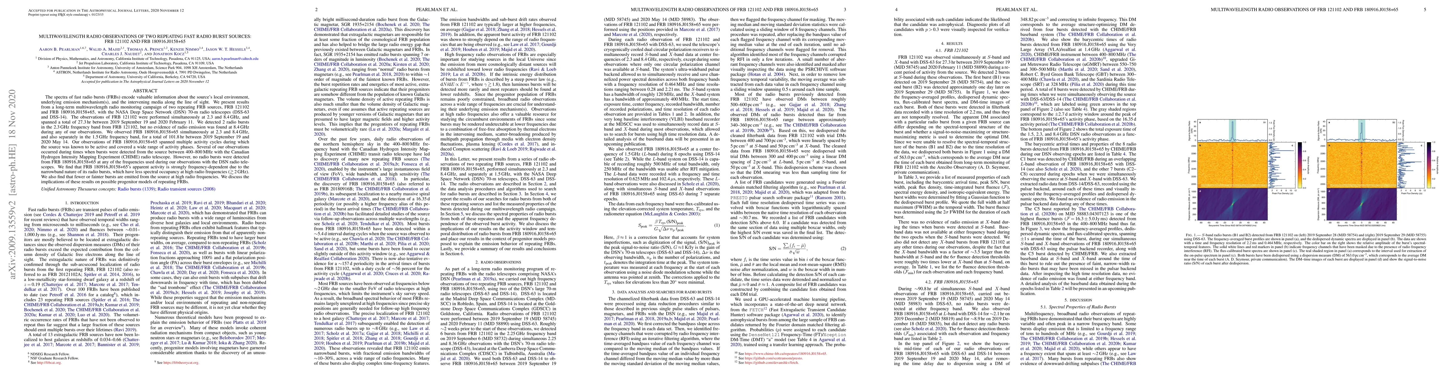 This study presents multiwavelength radio observations of two repeating fast radio burst (FRB) sources, FRB 121102 and FRB 180916.J0158+65, revealing no high-frequency radio bursts from FRB 121102 and suggesting frequency-dependent activity in FRB 180916.J0158+65, implicating its progenitor models.