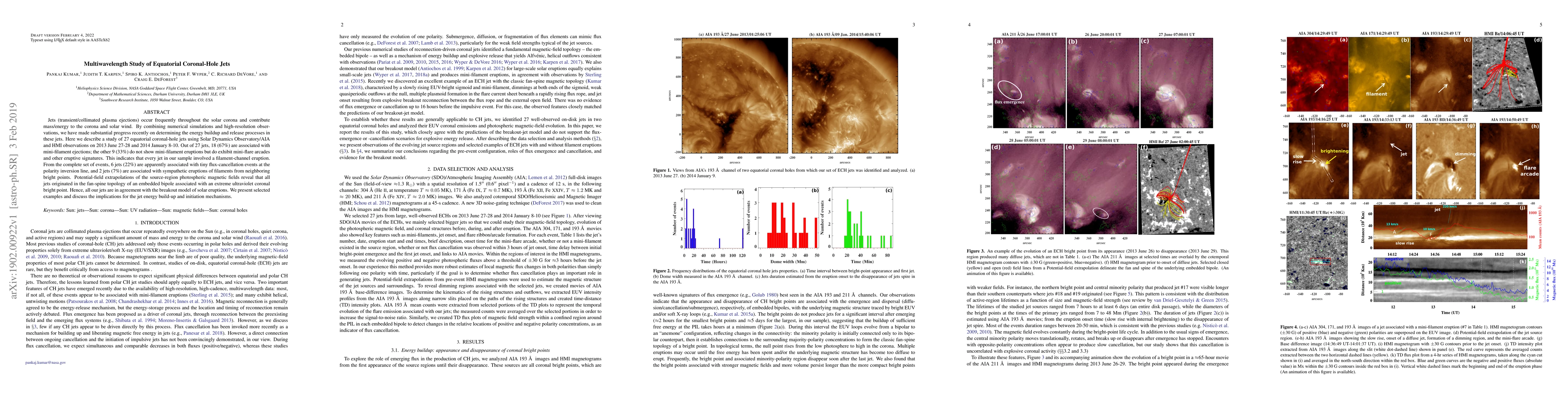 Jets (transient/collimated plasma ejections) occur frequently throughout the solar corona and contribute mass/energy to the corona and solar wind. By combining numerical simulations and high-resolution observations, we have made substantial progress recently on determining the energy buildup and release processes in these jets. Here we describe a study of 27 equatorial coronal-hole jets using Solar Dynamics Observatory/AIA and HMI observations on 2013 June 27-28 and 2014 January 8-10. Out of 27 jets, 18 (67%) are associated with mini-filament ejections; the other 9 (33%) do not show mini-filament eruptions but do exhibit mini-flare arcades and other eruptive signatures. This indicates that every jet in our sample involved a filament-channel eruption. From the complete set of events, 6 jets (22%) are apparently associated with tiny flux-cancellation events at the polarity inversion line, and 2 jets (7%) are associated with sympathetic eruptions of filaments from neighboring bright points. Potential-field extrapolations of the source-region photospheric magnetic fields reveal that all jets originated in the fan-spine topology of an embedded bipole associated with an extreme ultraviolet coronal bright point. Hence, all our jets are in agreement with the breakout model of solar eruptions. We present selected examples and discuss the implications for the jet energy build-up and initiation mechanisms.