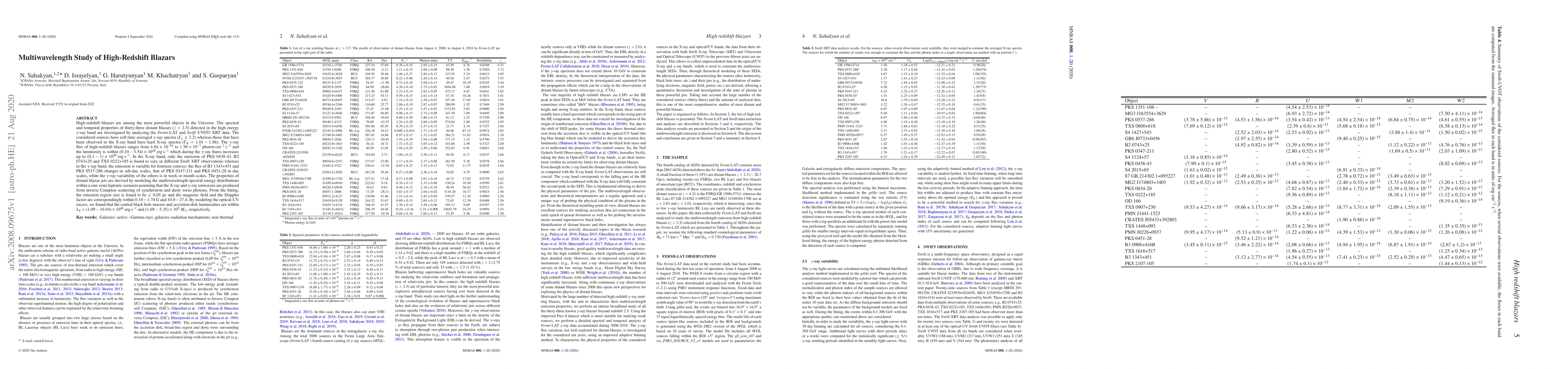 This study investigates the spectral and temporal properties of thirty-three high-redshift blazars ($z>2.5$) using {\it Fermi}-LAT and {\it Swift} data. The blazars exhibit variable $\gamma$-ray and X-ray emissions, with the $\gamma$-ray flux ranging from $4.84\times10^{-10}$ to $1.50\times10^{-7}$ photon cm$^{-2}$ s$^{-1}$. The study models the multiwavelength spectral energy distributions to derive properties of the blazar jets, finding emission region sizes of $\leq0.05$ pc and black hole masses between $(1.69-5.35)\times10^{9}\:M_\odot$.