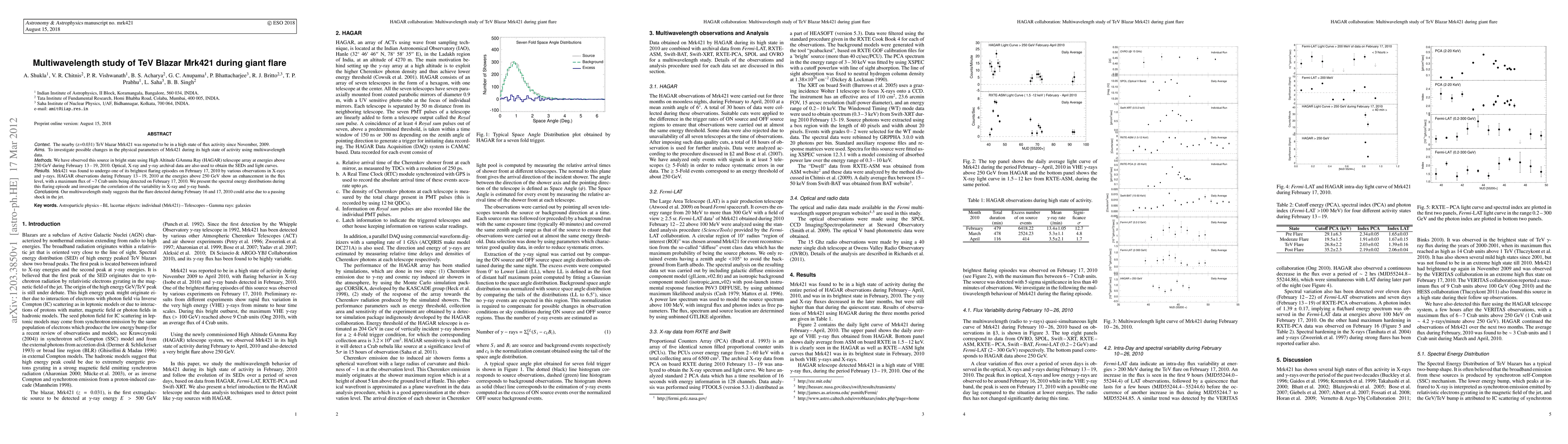 A study on the TeV blazar Mrk421 found a bright flare during February 2010, with enhanced gamma-ray flux detected using HAGAR telescope array, suggesting a passing shock in the jet as the cause of the flare.