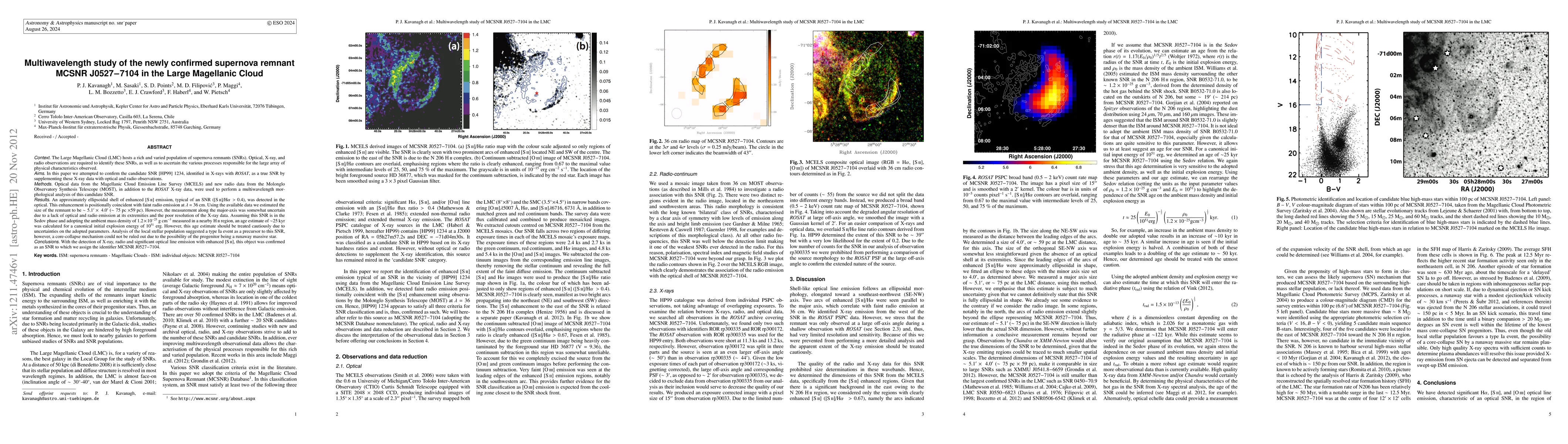 This paper confirms the supernova remnant MCSNR J0527-7104 in the Large Magellanic Cloud using multiwavelength observations, identifying it as an ellipsoidal shell with enhanced [SII] emission. An estimated age of ~25 kyr suggests a likely Type Ia supernova origin, though core-collapse cannot be ruled out.