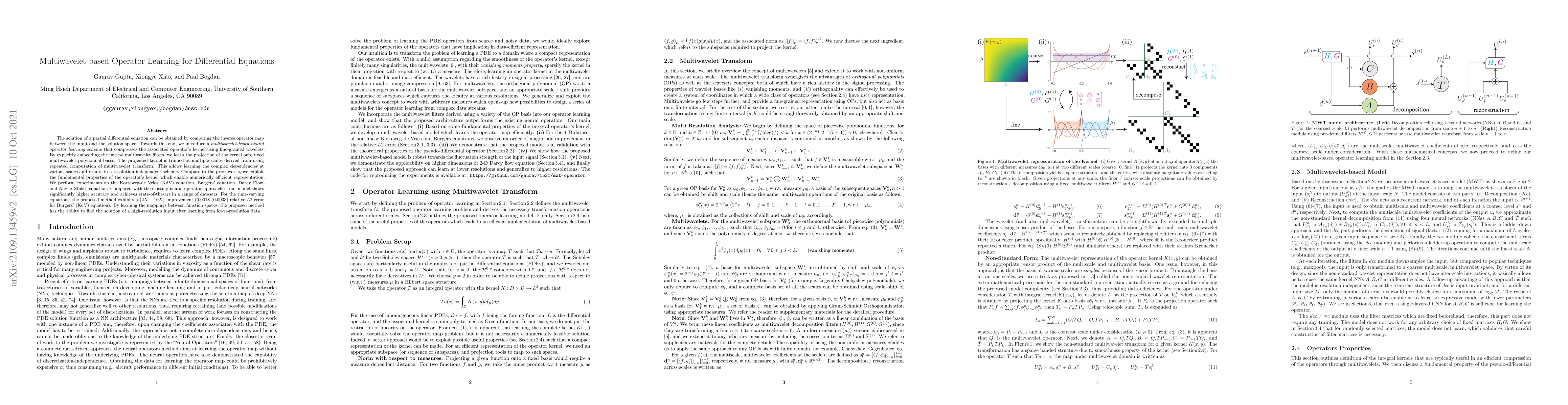 This paper proposes a multiwavelet-based neural operator learning scheme for solving partial differential equations by compressing the operator's kernel using fine-grained wavelets. The model demonstrates significantly higher accuracy and state-of-the-art performance on various equations, including the KdV and Navier-Stokes equations, showing a substantial improvement over existing methods.