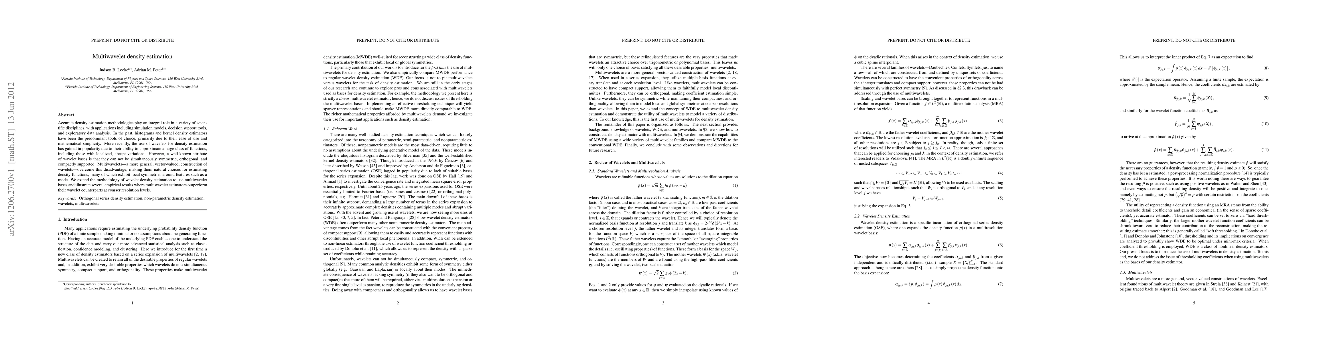The paper presents a method for multiwavelet density estimation (MWDE) and demonstrates its advantages over traditional wavelet density estimation (WDE) through empirical results, especially at coarser resolution levels.