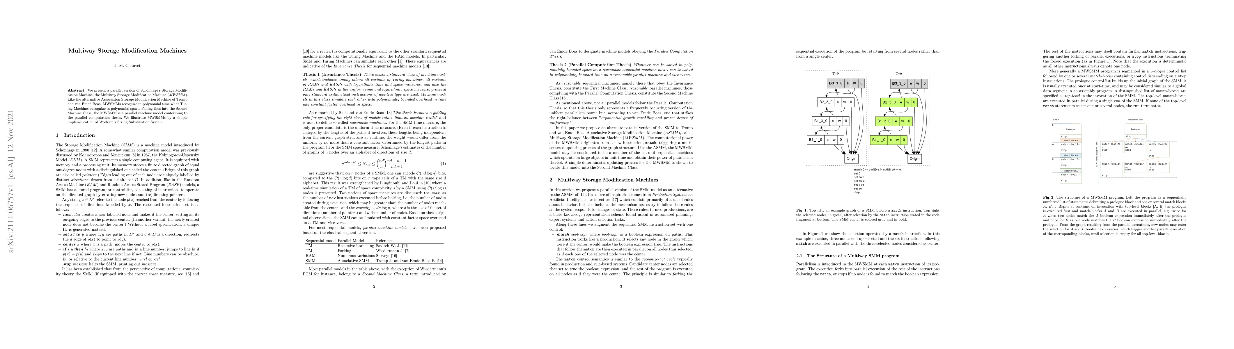 We present a parallel version of Sch\"onhage's Storage Modification Machine, the Multiway Storage Modification Machine (MWSMM). Like the alternative Association Storage Modification Machine of Tromp and van Emde Boas, MWSMMs recognize in polynomial time what Turing Machines recognize in polynomial space. Falling thus into the Second Machine Class, the MWSMM is a parallel machine model conforming to the Parallel Computation Thesis. We illustrate MWSMMs by a simple implementation of Wolfram's String Substitution System.