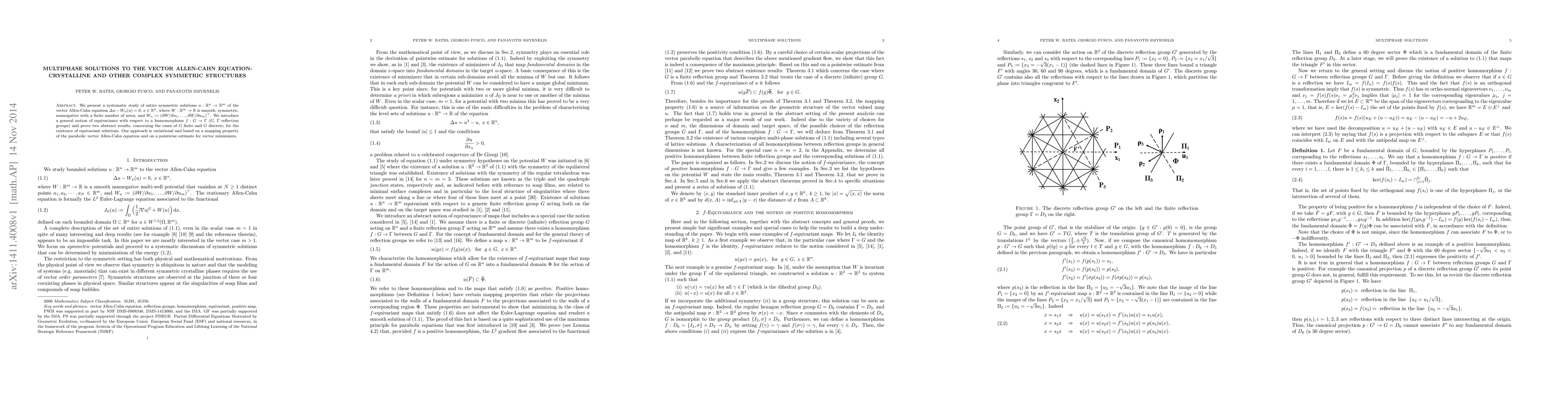 This paper systematically studies entire symmetric solutions of the vector Allen-Cahn equation, introducing a notion of equivariance with respect to reflection groups. It proves existence results for equivariant solutions using variational methods and pointwise estimates for vector minimizers.