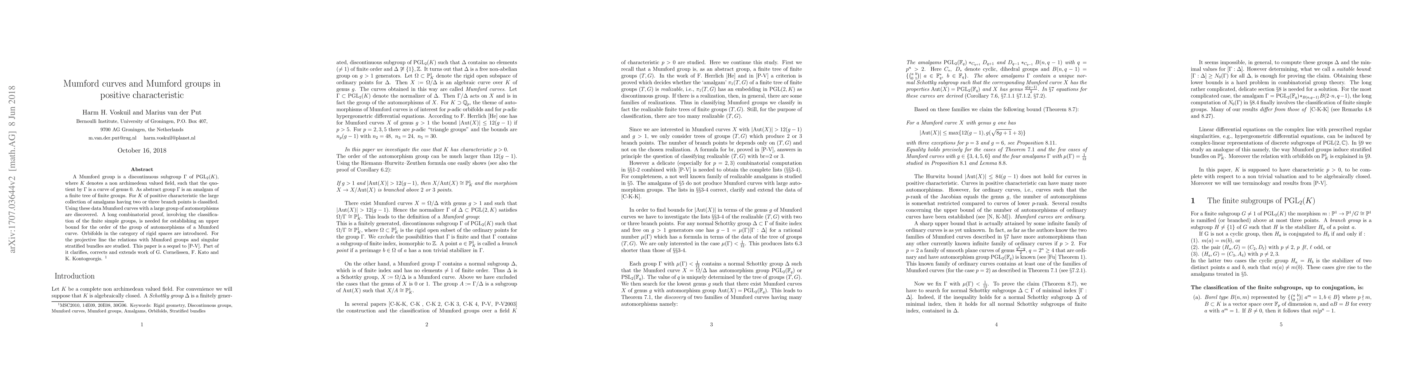 This paper classifies Mumford groups in positive characteristic, which are discontinuous subgroups of PGL(2,K) yielding genus 0 curves, and identifies Mumford curves with large automorphism groups through intricate combinatorial proofs involving finite simple groups. It also introduces orbifolds in rigid spaces and studies their relation with Mumford groups.