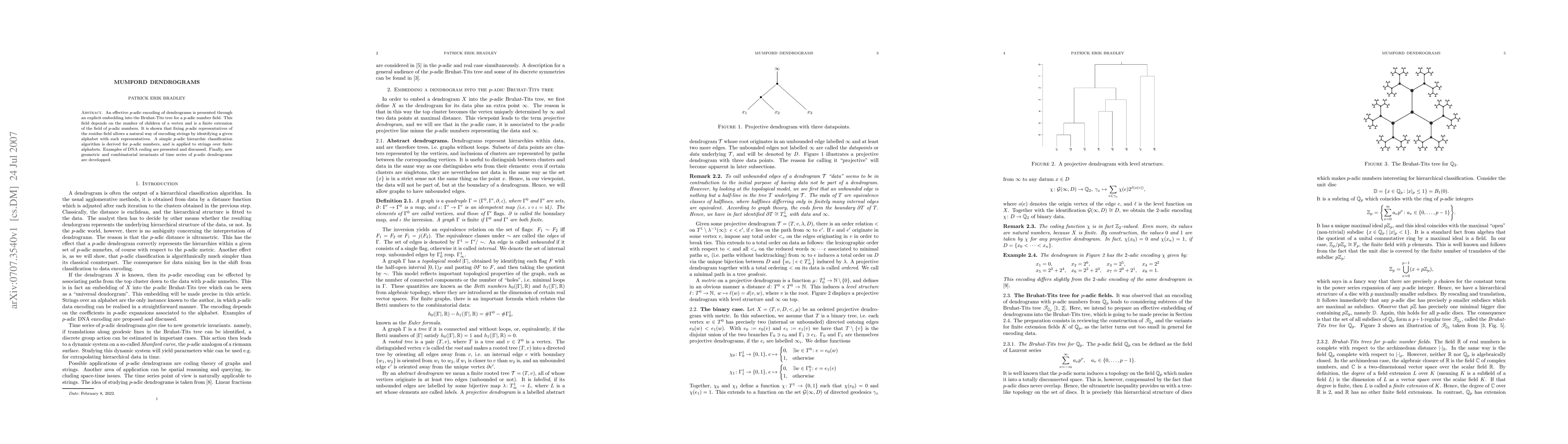 A new way to encode and analyze complex data structures called dendrograms is presented using $p$-adic numbers, offering a natural method for classifying strings and time series.