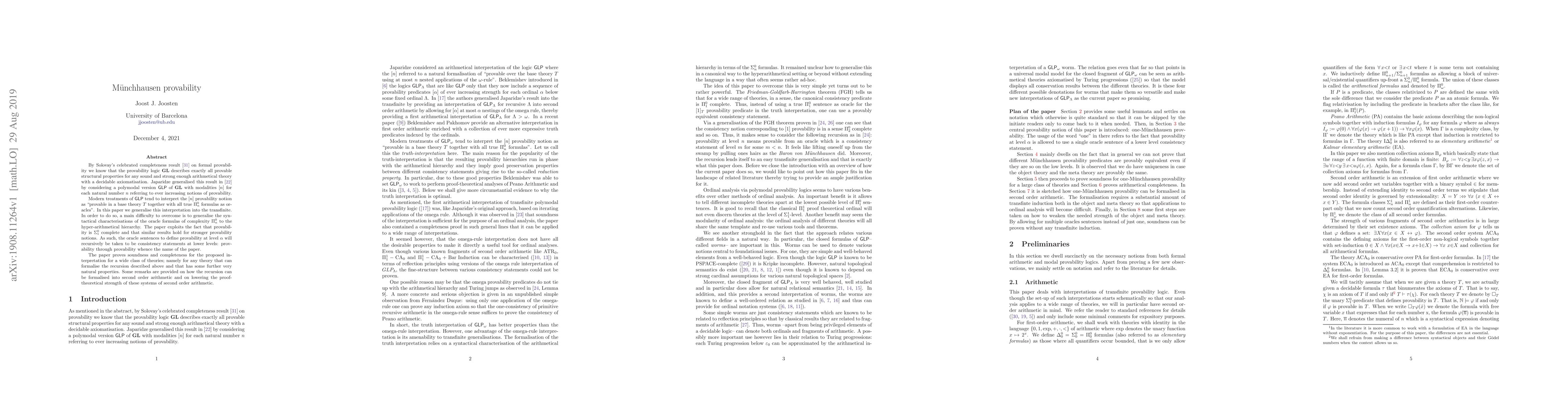 By Solovay's celebrated completeness result on formal provability we know that the provability logic $\mathrm GL$ describes exactly all provable structural properties for any sound and strong enough arithmetical theory with a decidable axiomatisation. Japaridze generalised this result by considering a polymodal version $\mathrm GLP$ of $\mathrm GL$ with modalities $[n]$ for each natural number $n$ referring to ever increasing notions of provability. Modern treatments of $\mathrm GLP$ tend to interpret the $[n]$ provability notion as "provable in a base theory $T$ together with all true $\Pi^0_n$ formulas as oracles". In this paper we generalise this interpretation into the transfinite. In order to do so, a main difficulty to overcome is to generalise the syntactical characterisations of the oracle formulas of complexity $\Pi^0_n$ to the hyper-arithmetical hierarchy. The paper exploits the fact that provability is $\Sigma^0_1$ complete and that similar results hold for stronger provability notions. As such, the oracle sentences to define provability at level $\alpha$ will recursively be taken to be consistency statements at lower levels: provability through provability whence the name of the paper. The paper proves soundness and completeness for the proposed interpretation for a wide class of theories; namely for any theory that can formalise the recursion described above and that has some further very natural properties. Some remarks are provided on how the recursion can be formalised into second order arithmetic and on lowering the proof-theoretical strength of these systems of second order arithmetic.