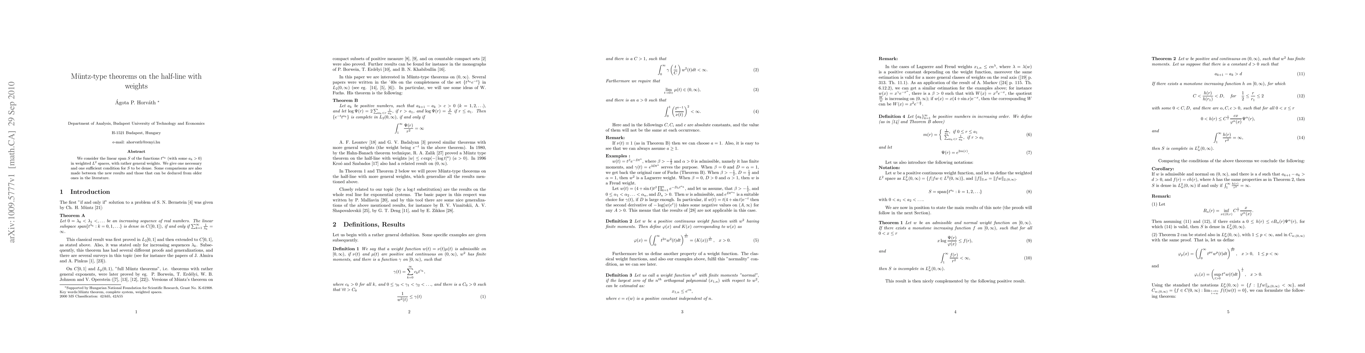 We consider the linear span S of the functions tak (with some ak > 0) in weighted L2 spaces, with rather general weights. We give one necessary and one sufficient condition for S to be dense. Some comparisons are also made between the new results and those that can be deduced from older ones in the literature.