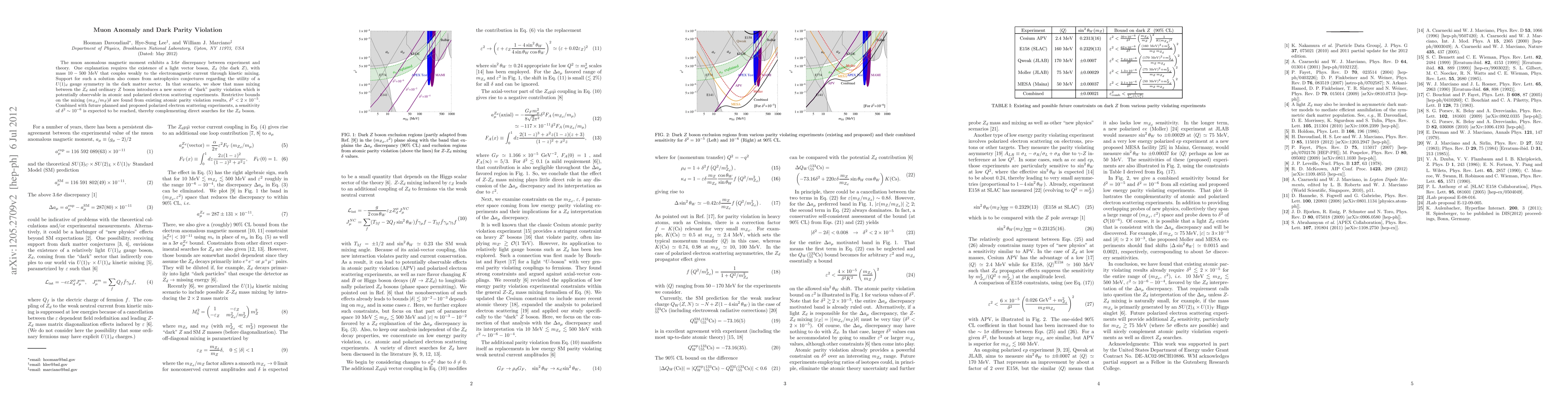 This paper explores a light vector boson, Z_d, as a potential explanation for the discrepancy in the muon anomalous magnetic moment, suggesting its existence could introduce "dark" parity violation observable in atomic and polarized electron scattering experiments. Future experiments aim to reach a sensitivity that could complement direct searches for Z_d.