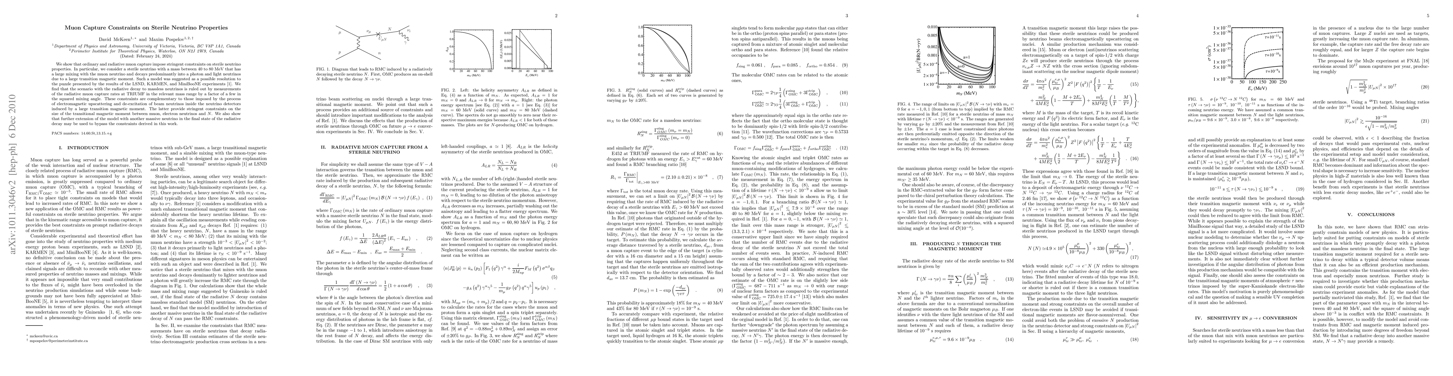 This paper demonstrates that muon capture experiments impose stringent constraints on the properties of sterile neutrinos, particularly those with masses between 40 to 80 MeV and large mixing with muon neutrinos. The study rules out a radiative decay model to massless neutrinos based on TRIUMF measurements, providing complementary constraints to those from electromagnetic upscattering processes.