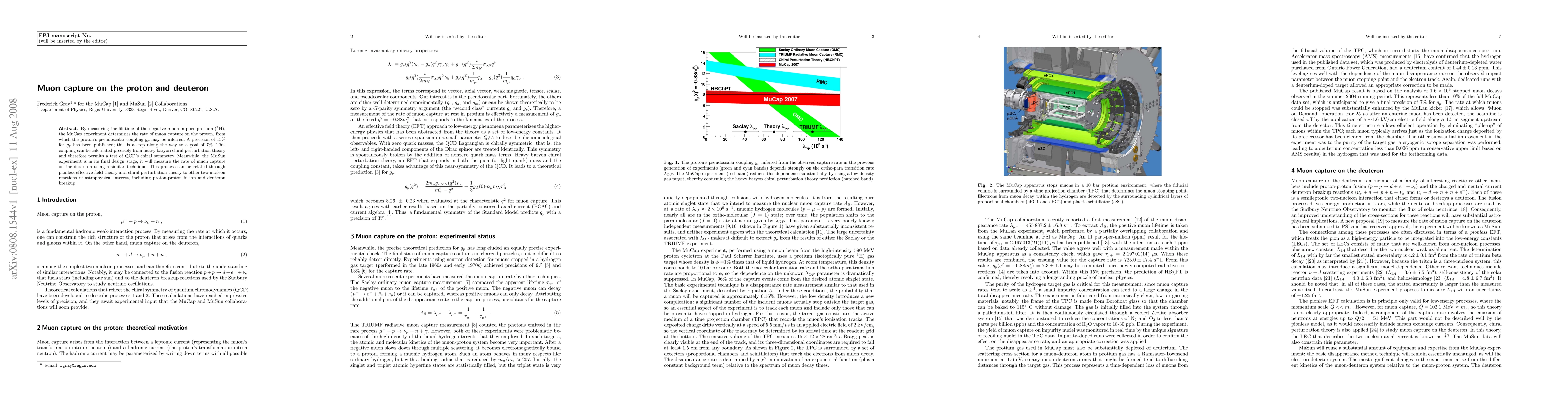 The MuCap experiment measures the negative muon lifetime in protium to determine the proton's pseudoscalar coupling g_p with a 15% precision, aiding in testing QCD's chiral symmetry. The MuSun experiment aims to measure muon capture on the deuteron, linking it to astrophysically relevant two-nucleon reactions.