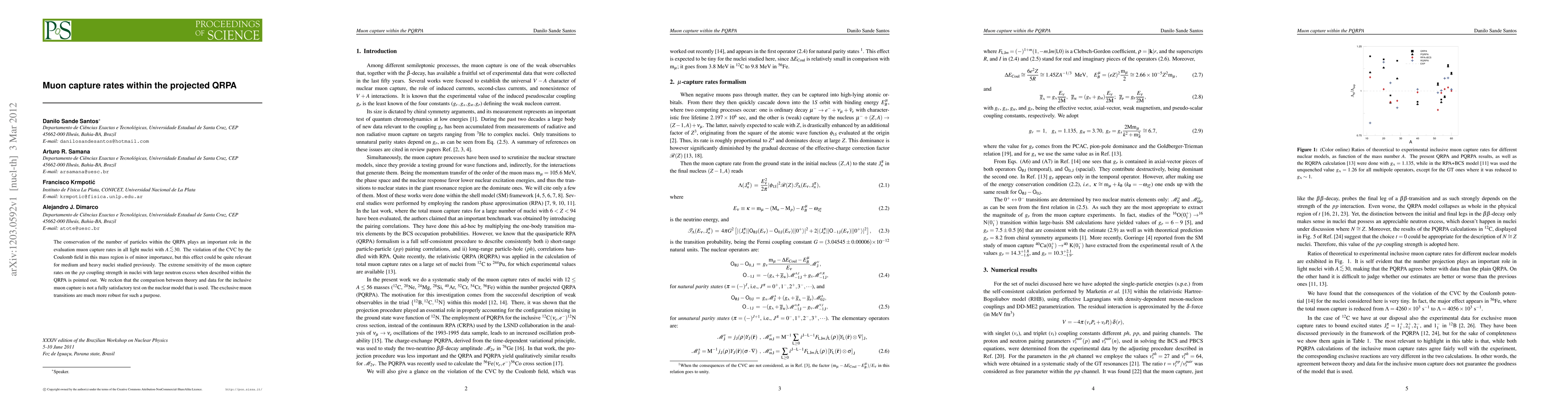 This paper evaluates muon capture rates in light nuclei (A ≤ 30) using the Quasiparticle Random Phase Approximation (QRPA), highlighting the importance of particle number conservation and the minor impact of Coulomb field violations on the conserved vector current (CVC). It emphasizes the sensitivity of capture rates to the 'pp' coupling strength in neutron-rich nuclei.