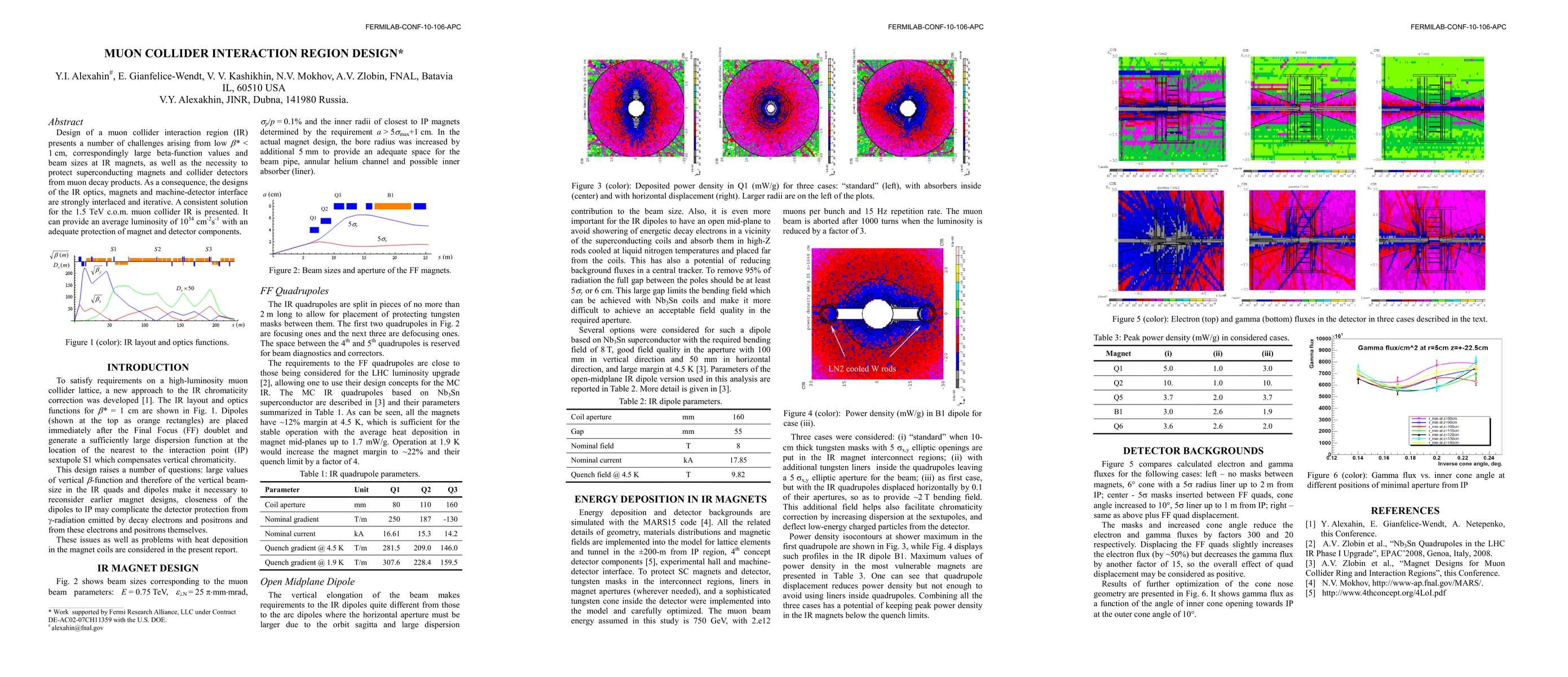 Design of a muon collider interaction region (IR) presents a number of challenges arising from low {\beta} * < 1 cm, correspondingly large beta-function values and beam sizes at IR magnets, as well as the necessity to protect superconducting magnets and collider detectors from muon decay products. As a consequence, the designs of the IR optics, magnets and machine-detector interface are strongly interlaced and iterative. A consistent solution for the 1.5 TeV c.o.m. muon collider IR is presented. It can provide an average luminosity of 1034 cm-2s-1 with an adequate protection of magnet and detector components.