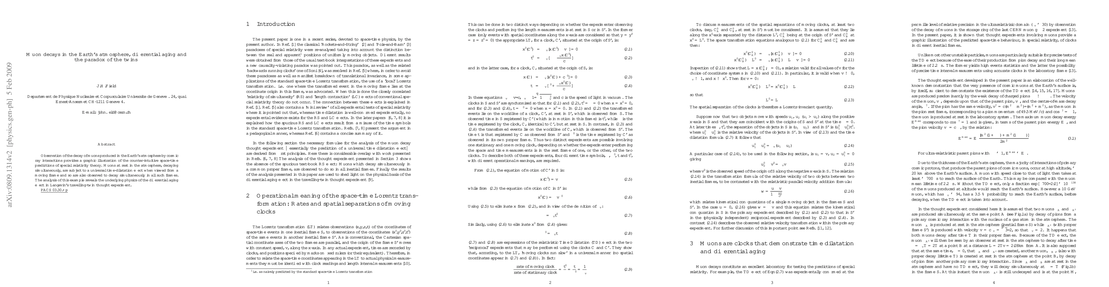 Observation of the decay of muons produced in the Earth's atmosphere by cosmic ray interactions provides a graphic illustration of the counter-intuitive space-time predictions of special relativity theory. Muons at rest in the atmosphere, decaying simultaneously, are subject to a universal time-dilatation effect when viewed from a moving frame and so are also observed to decay simultaneously in all such frames. The analysis of this example reveals the underlying physics of the differential aging effect in Langevin's travelling-twin thought experiment.