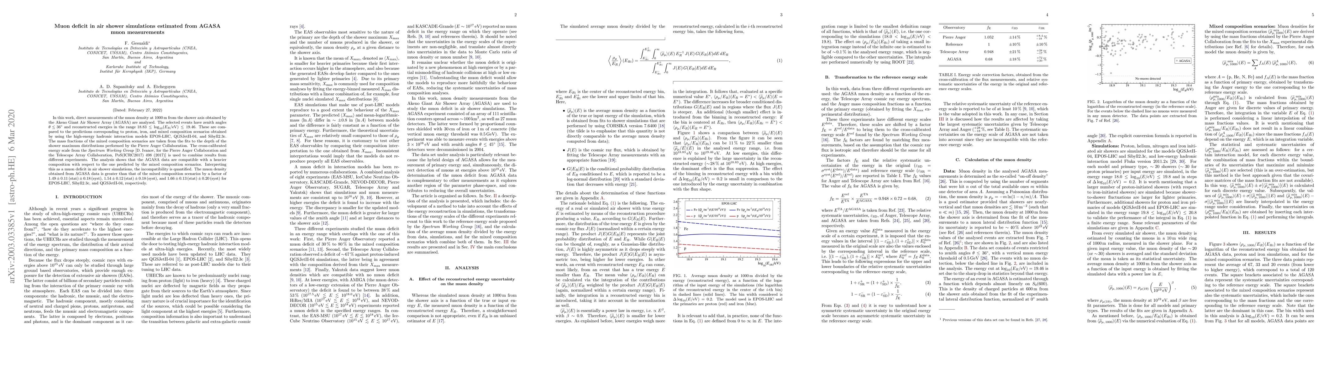 This study analyzes AGASA muon measurements to compare observed muon densities at 1000 m from the shower axis with predictions from various hadronic interaction models. The results indicate a muon deficit in simulations, showing AGASA data is greater than model predictions by factors of 1.49 to 1.66, suggesting a heavier composition than previously assumed.