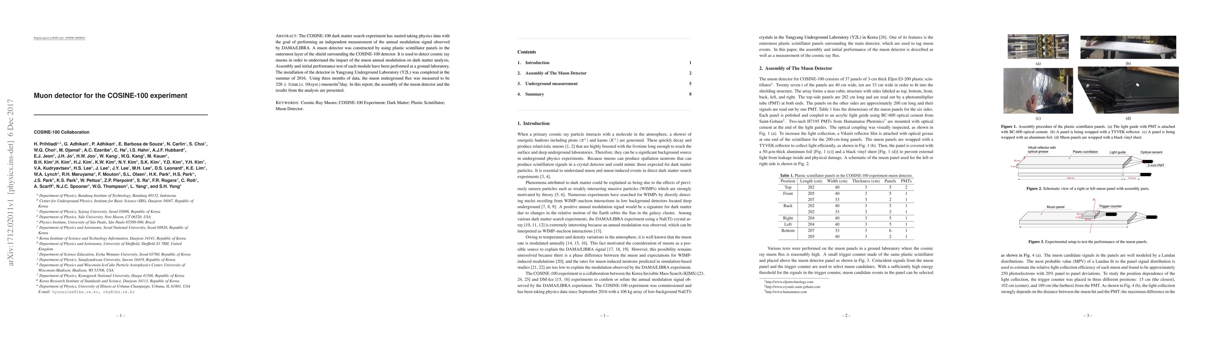 A muon detector was built to study cosmic rays at the COSINE-100 experiment, yielding a flux of 328 muons/m^2/day, and providing insights into the annual modulation signal observed in dark matter searches.