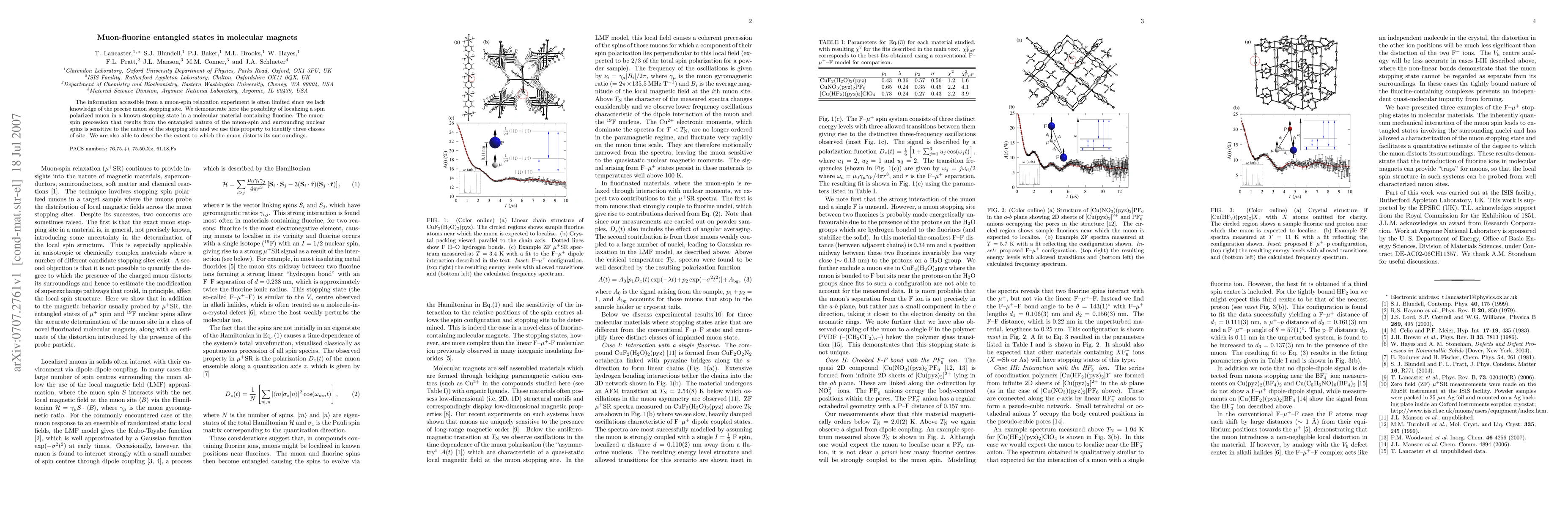 The information accessible from a muon-spin relaxation experiment is often limited since we lack knowledge of the precise muon stopping site. We demonstrate here the possibility of localizing a spin polarized muon in a known stopping state in a molecular material containing fluorine. The muon-spin precession that results from the entangled nature of the muon-spin and surrounding nuclear spins is sensitive to the nature of the stopping site and we use this property to identify three classes of site. We are also able to describe the extent to which the muon distorts its surroundings.
