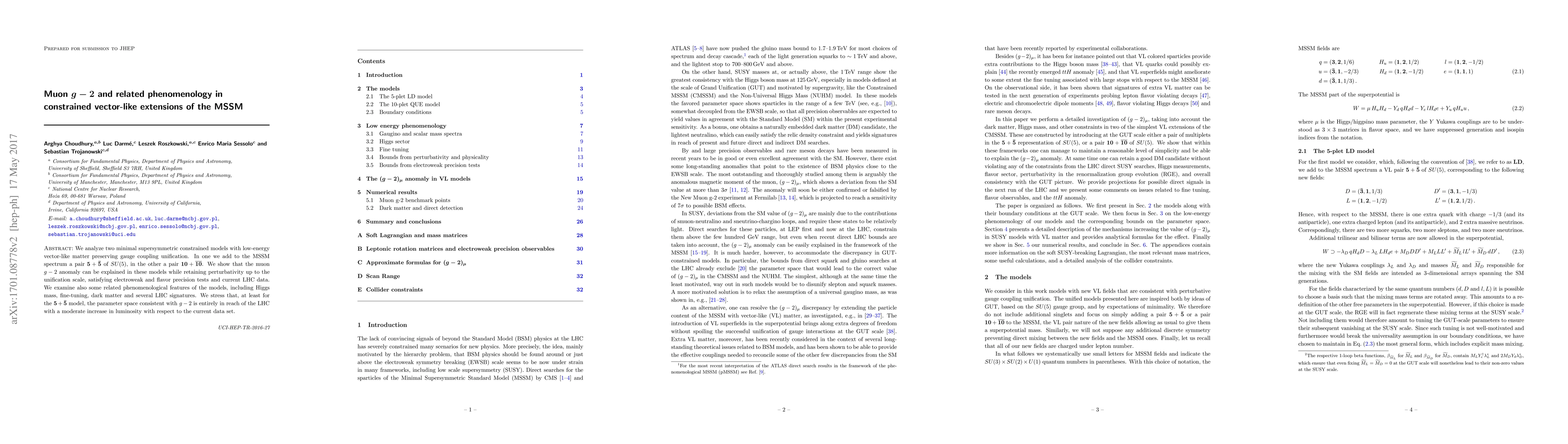Researchers investigate two minimal supersymmetric models with vector-like matter that could explain the muon g-2 anomaly while satisfying precision tests and current LHC data.