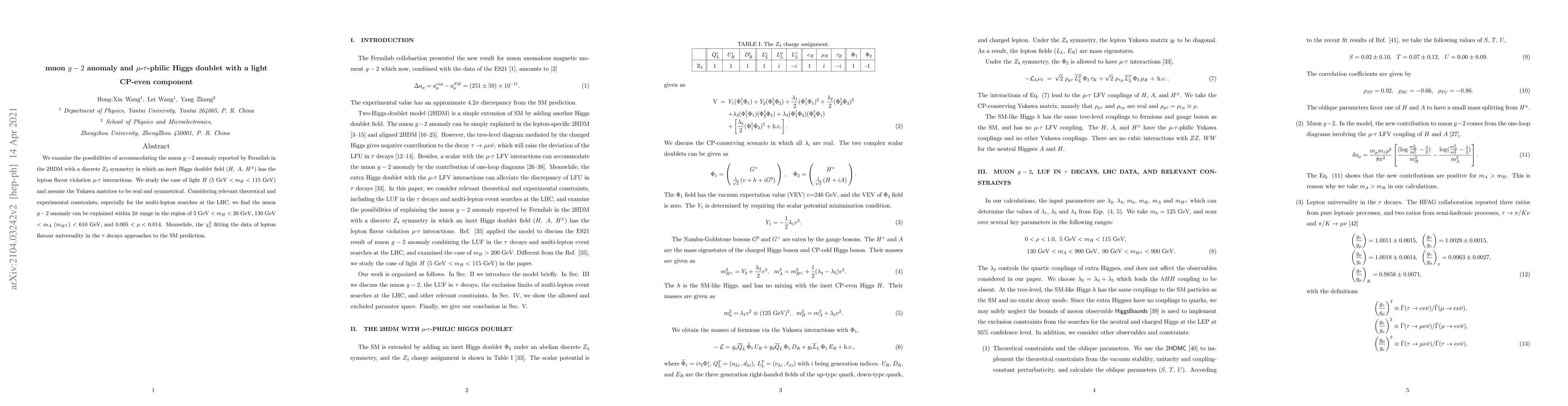 by Fermilab in the 2HDM with a discrete $Z_4$ symmetry in which an inert Higgs