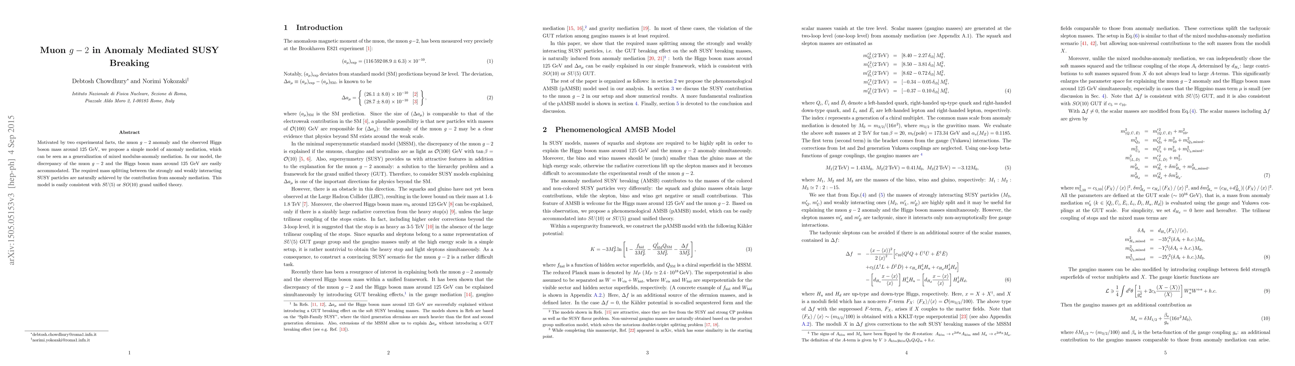 This paper proposes a simple model of anomaly mediated SUSY breaking to address the muon g-2 anomaly and the Higgs boson mass around 125 GeV, achieving a natural mass splitting between SUSY particles and aligning with SU(5) or SO(10) grand unified theories. The model effectively accommodates both experimental observations.