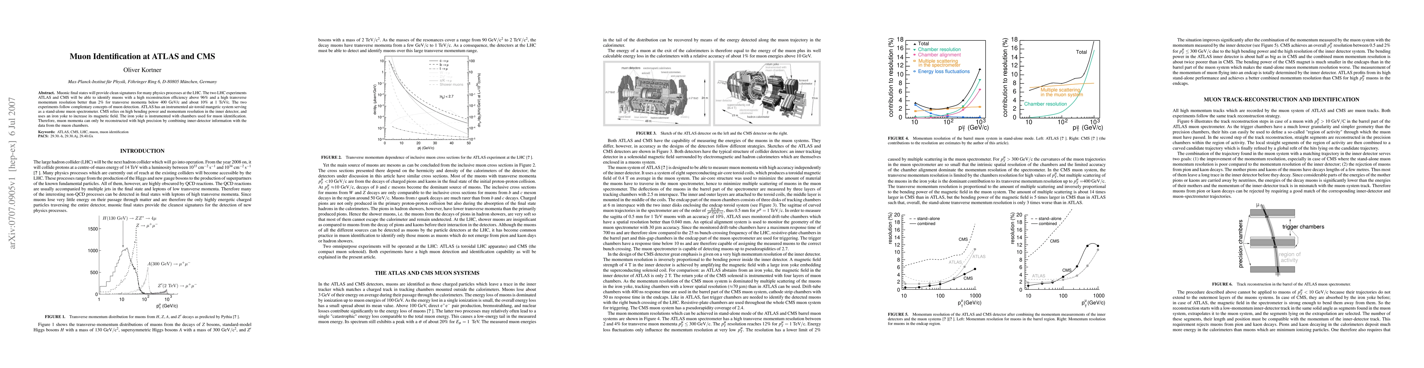 Summary: The ATLAS and CMS experiments at the LHC identify muons with high efficiency and precision, employing distinct detection methods: ATLAS uses an air-toroid magnetic system, while CMS combines inner detector data with instrumented iron yoke chambers for high-resolution muon momentum reconstruction.