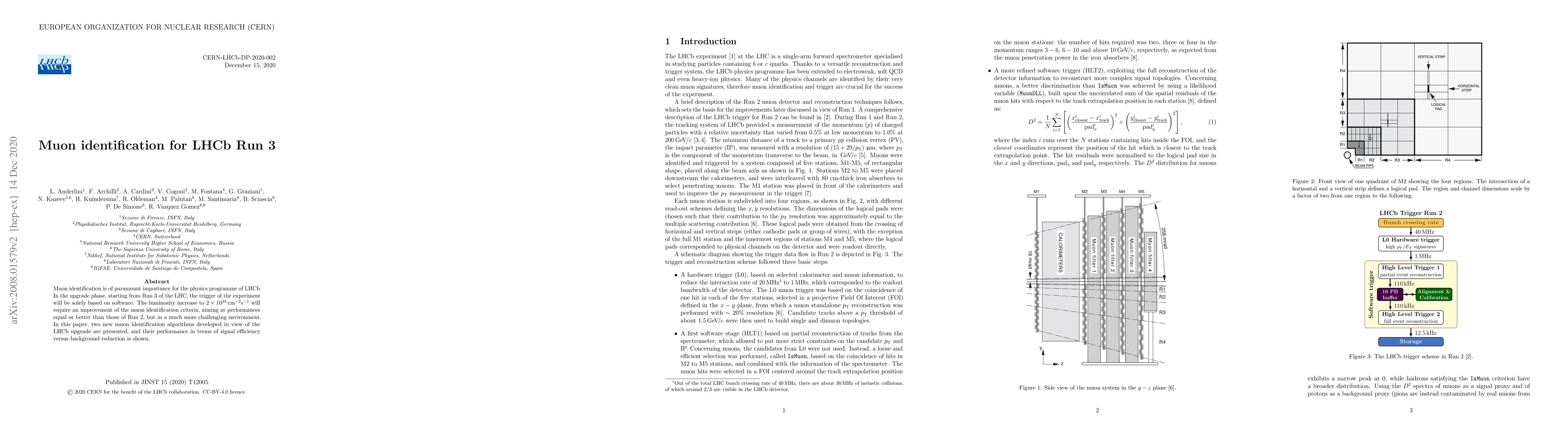 This paper presents two new muon identification algorithms designed for the LHCb experiment's Run 3 upgrade, which will operate with software-based triggering and higher luminosity. The algorithms aim to maintain or exceed Run 2 performance levels in a more challenging environment.