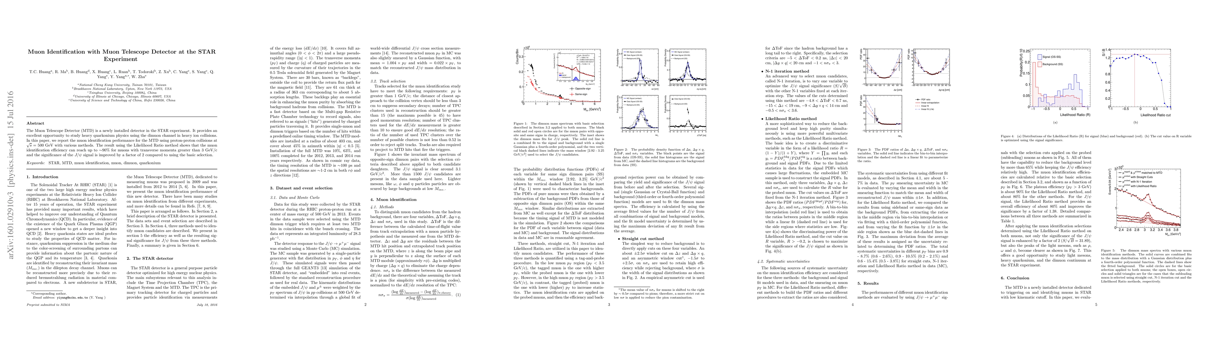 This paper evaluates the performance of the Muon Telescope Detector (MTD) in the STAR experiment for muon identification, achieving an efficiency of around 90% for muons with transverse momentum above 3 GeV/c. The Likelihood Ratio method enhances the significance of the J/ψ signal by approximately 40% compared to basic selection methods.