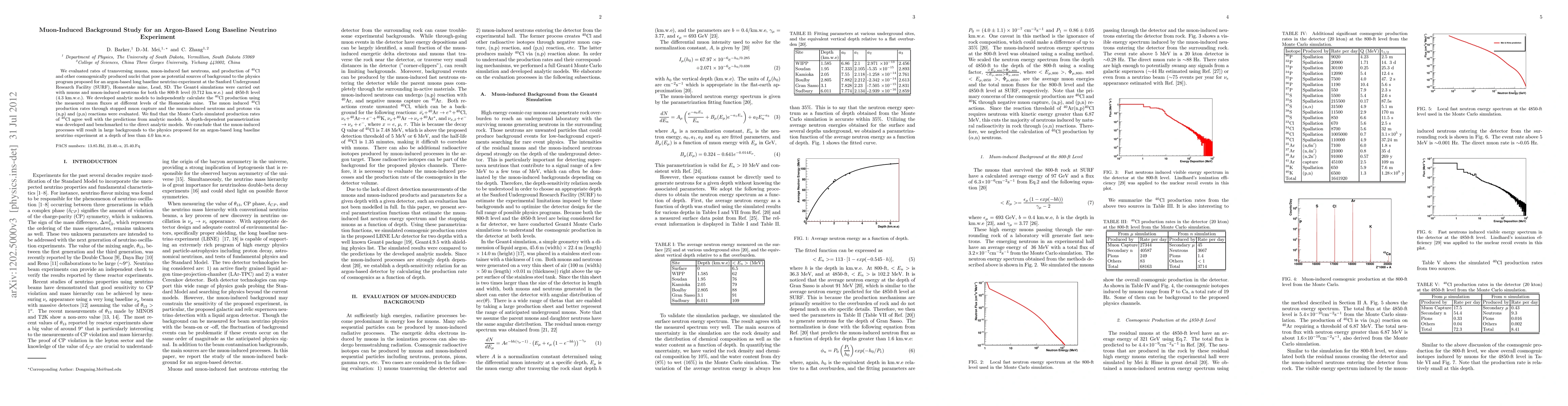 A study evaluated muon-induced background sources for an argon-based long baseline neutrino experiment, finding that processes like $^{40}$Cl production will result in large backgrounds at depths of less than 4 km.w.e.