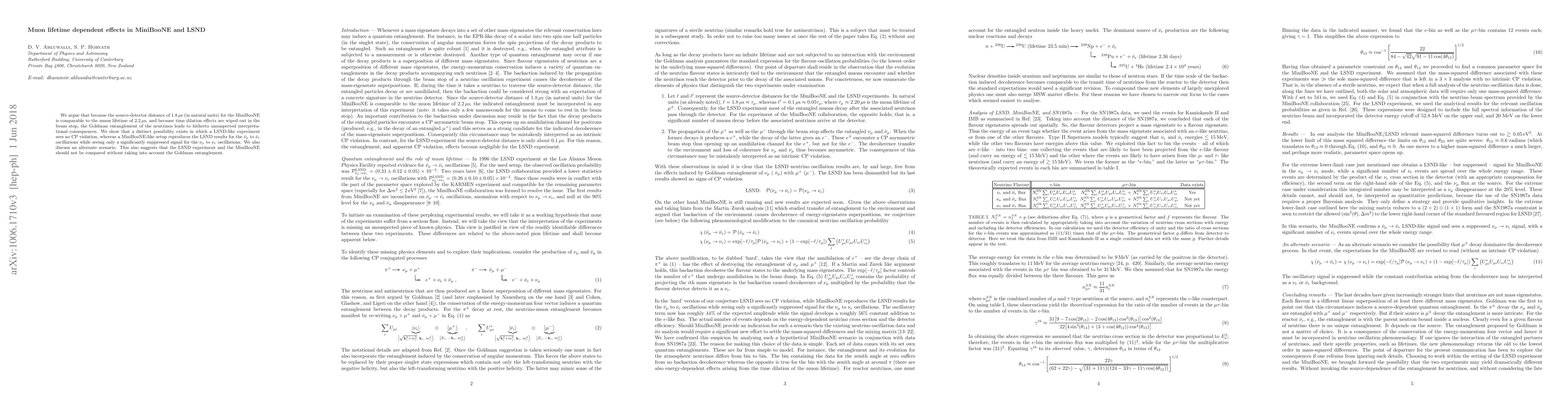 This paper explores the implications of muon lifetime effects in neutrino oscillation experiments, specifically MiniBooNE and LSND, suggesting that the comparable source-detector distance to the muon lifetime leads to significant interpretational consequences due to Goldman entanglement, potentially explaining differing results between the two experiments.