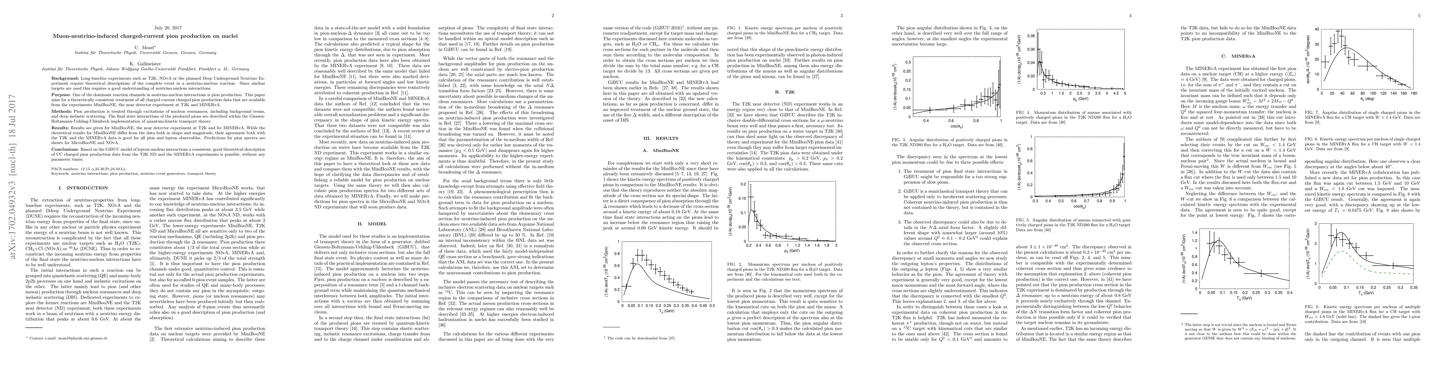 This paper provides a comprehensive theoretical analysis of muon-neutrino-induced charged current pion production on nuclei, focusing on data from MiniBooNE, T2K, and MINERvA. The GiBUU model effectively describes T2K and MINERvA data but fails to match the MiniBooNE results, highlighting discrepancies in theoretical predictions.