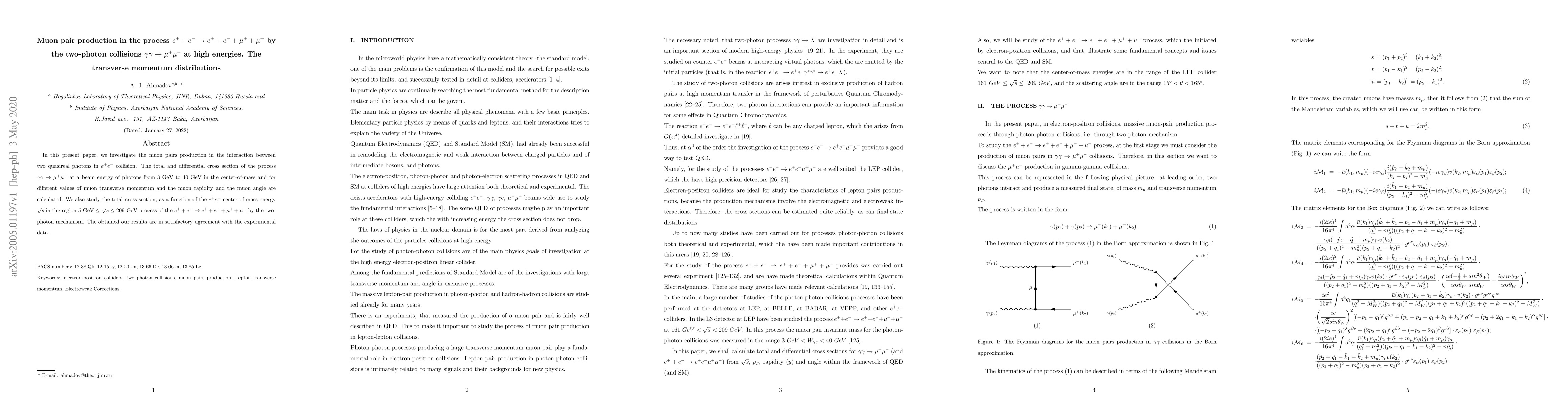This research investigates muon pair production through two-photon collisions in high-energy $e^+ e^-$ interactions, calculating differential cross sections for various muon transverse momentum, rapidity, and angle. The findings align well with experimental data.